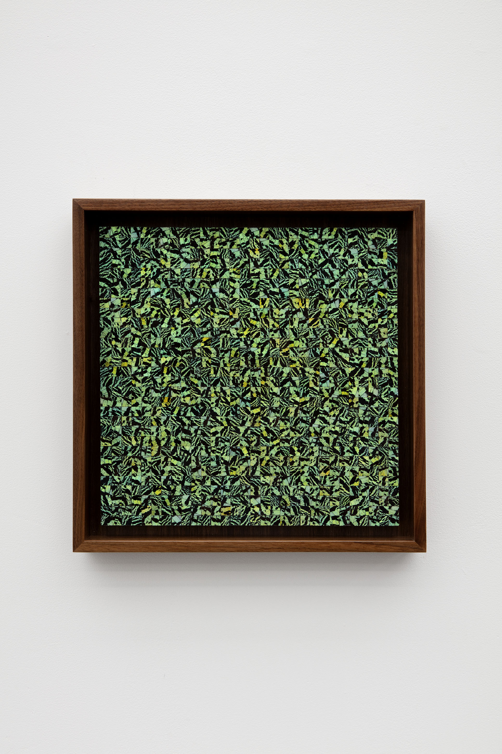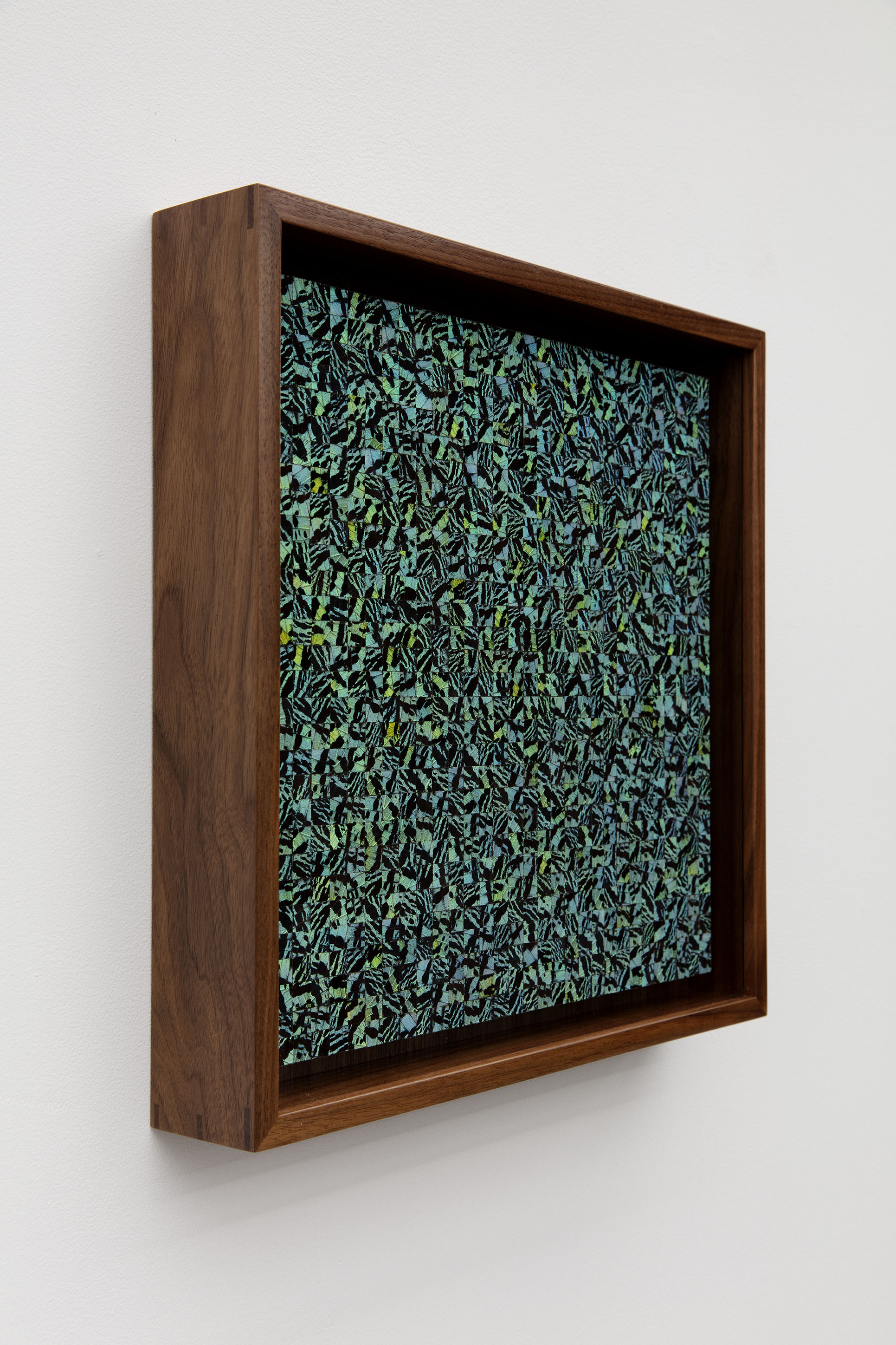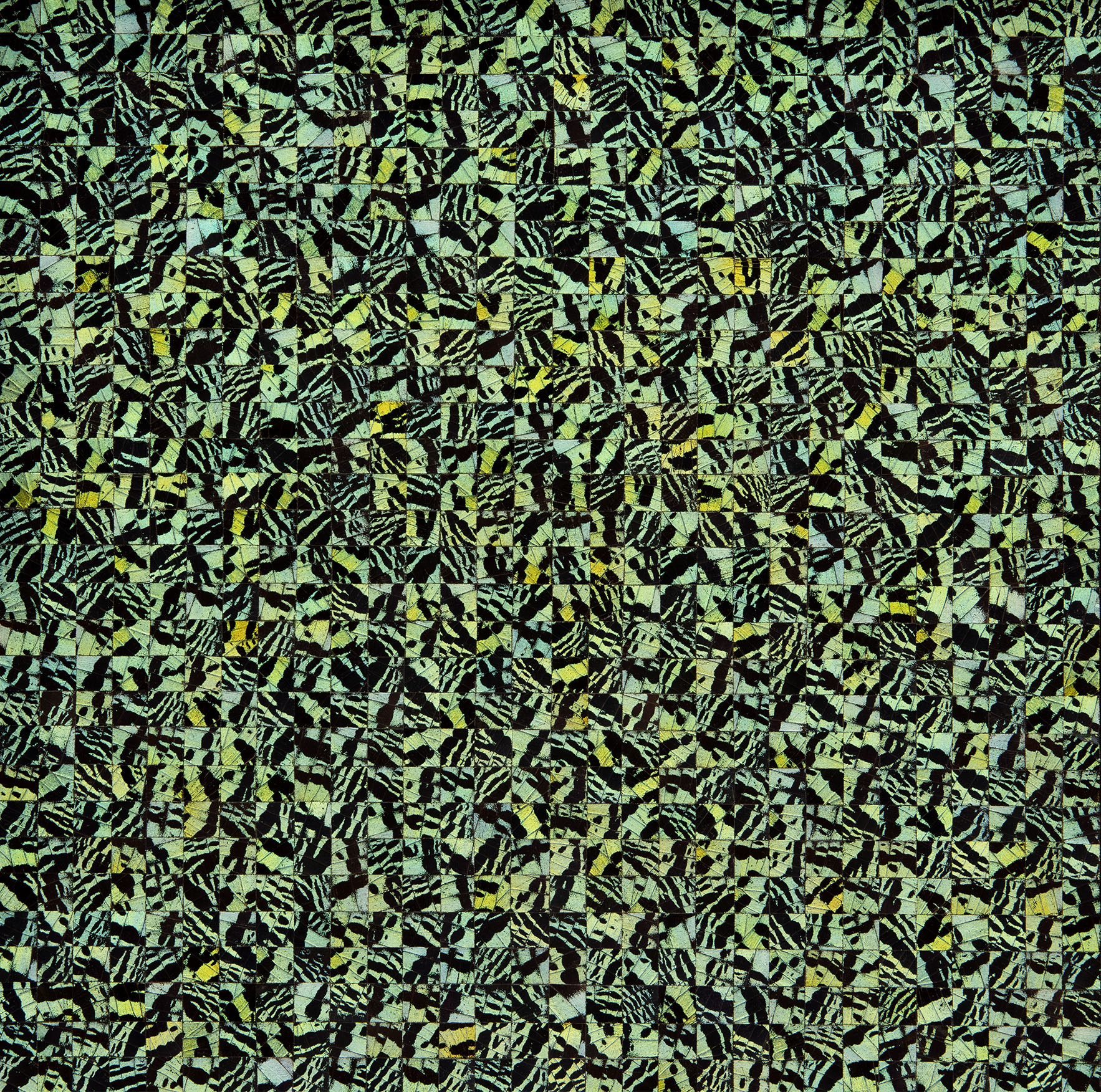 Urania ripheus butterfly wings mosaic on museum cardboard