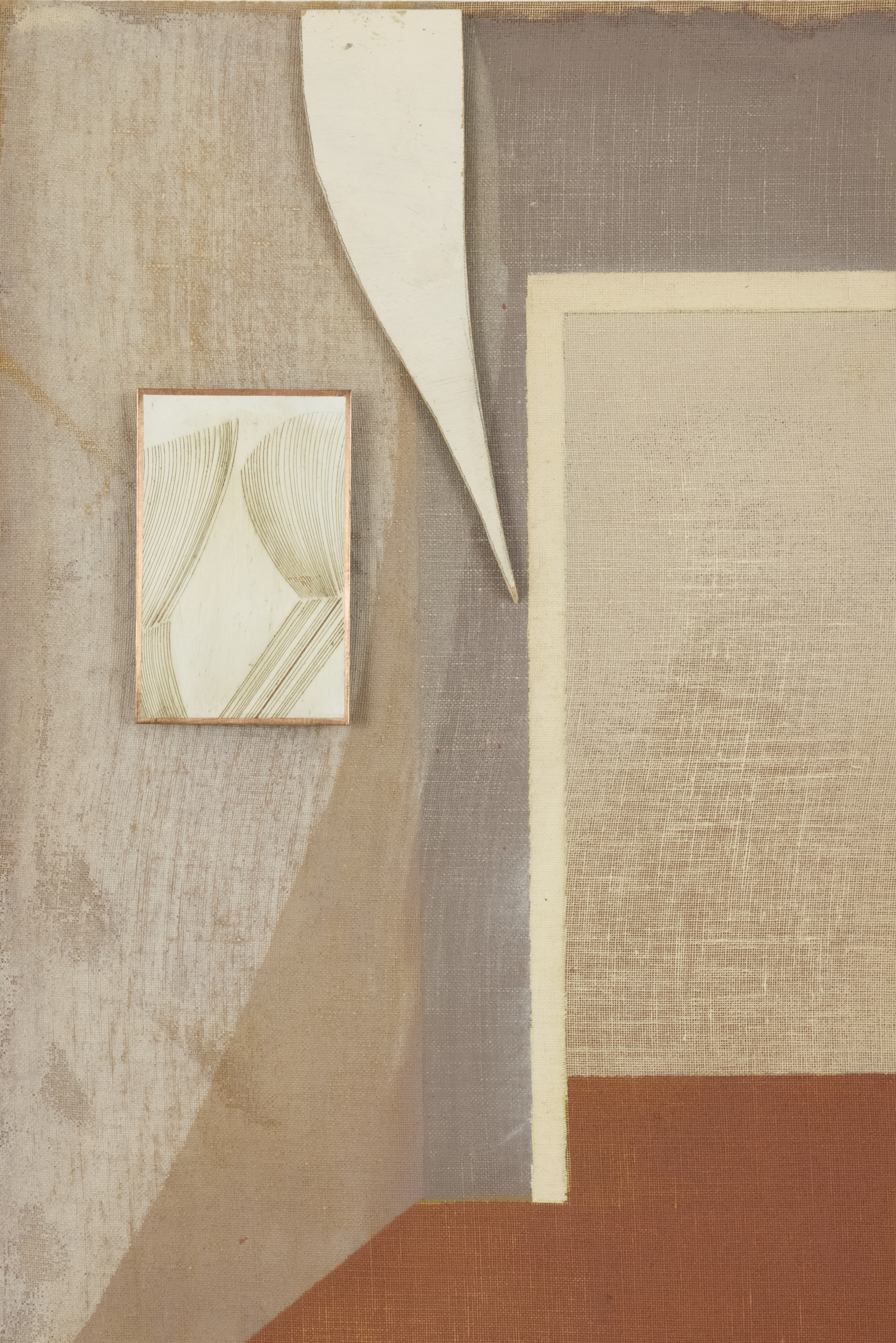 Oil, inks, vinyl, wood, copper on panel