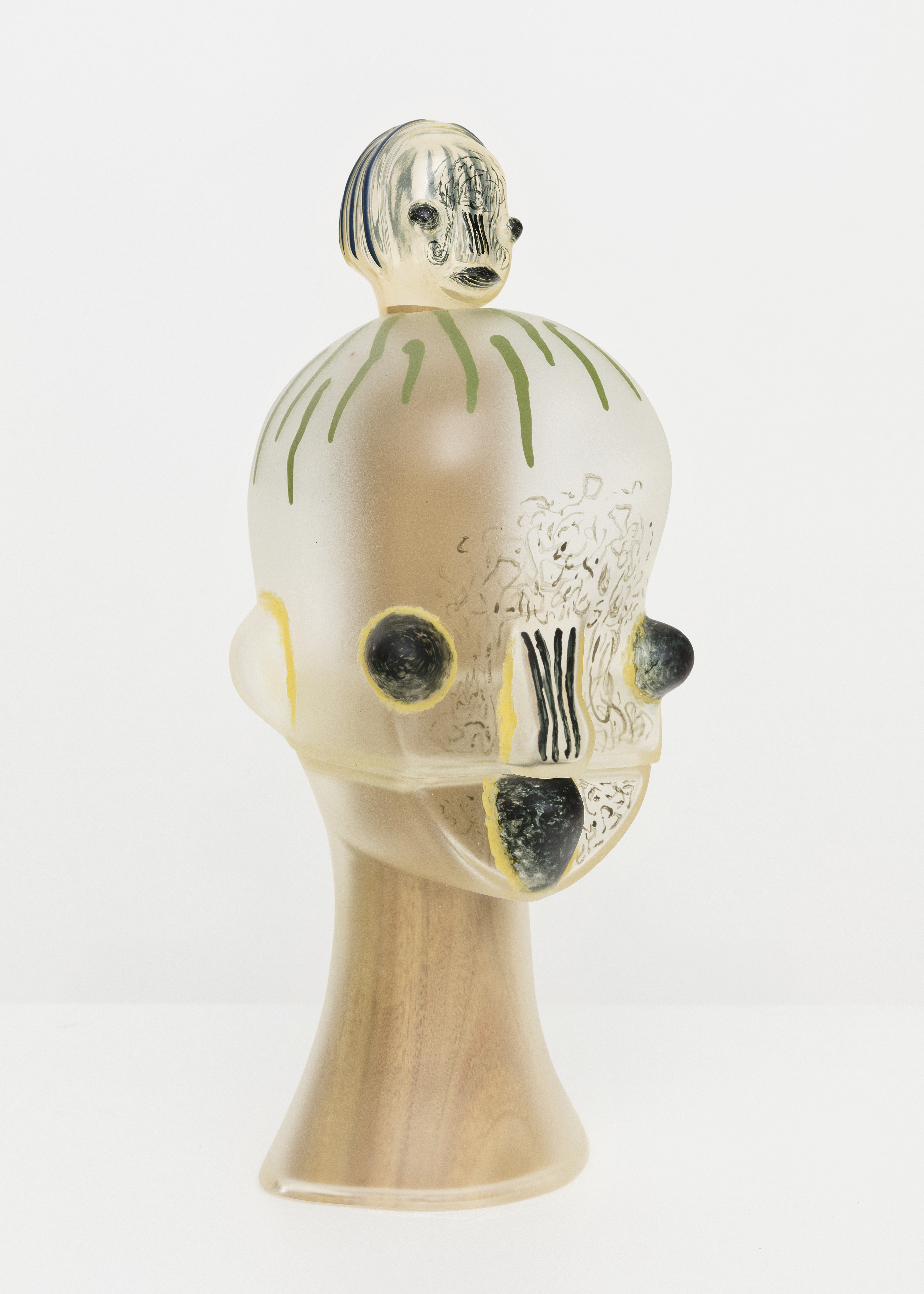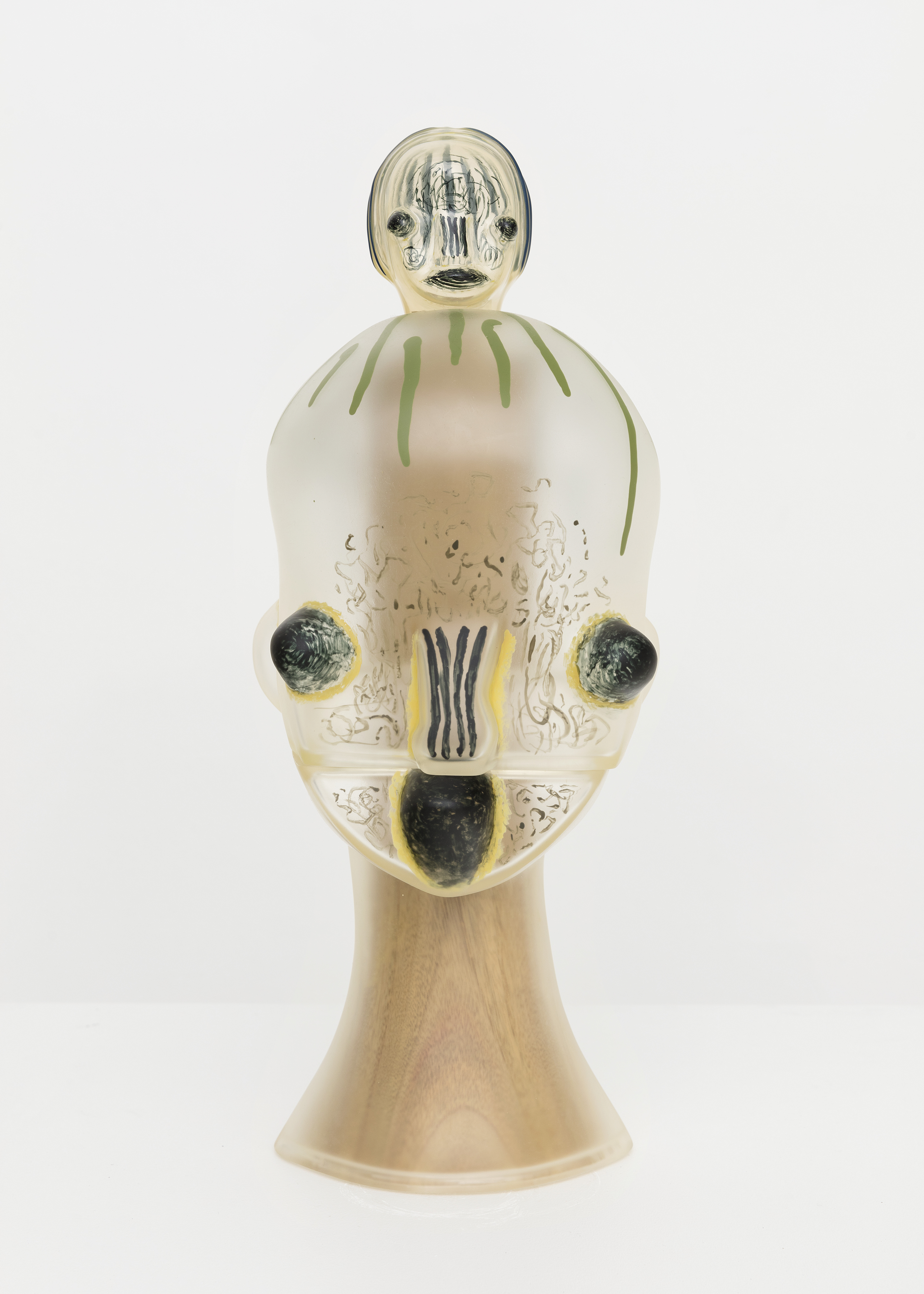 Soft vinyl, wood, acrylic, wood case with plexiglass cover