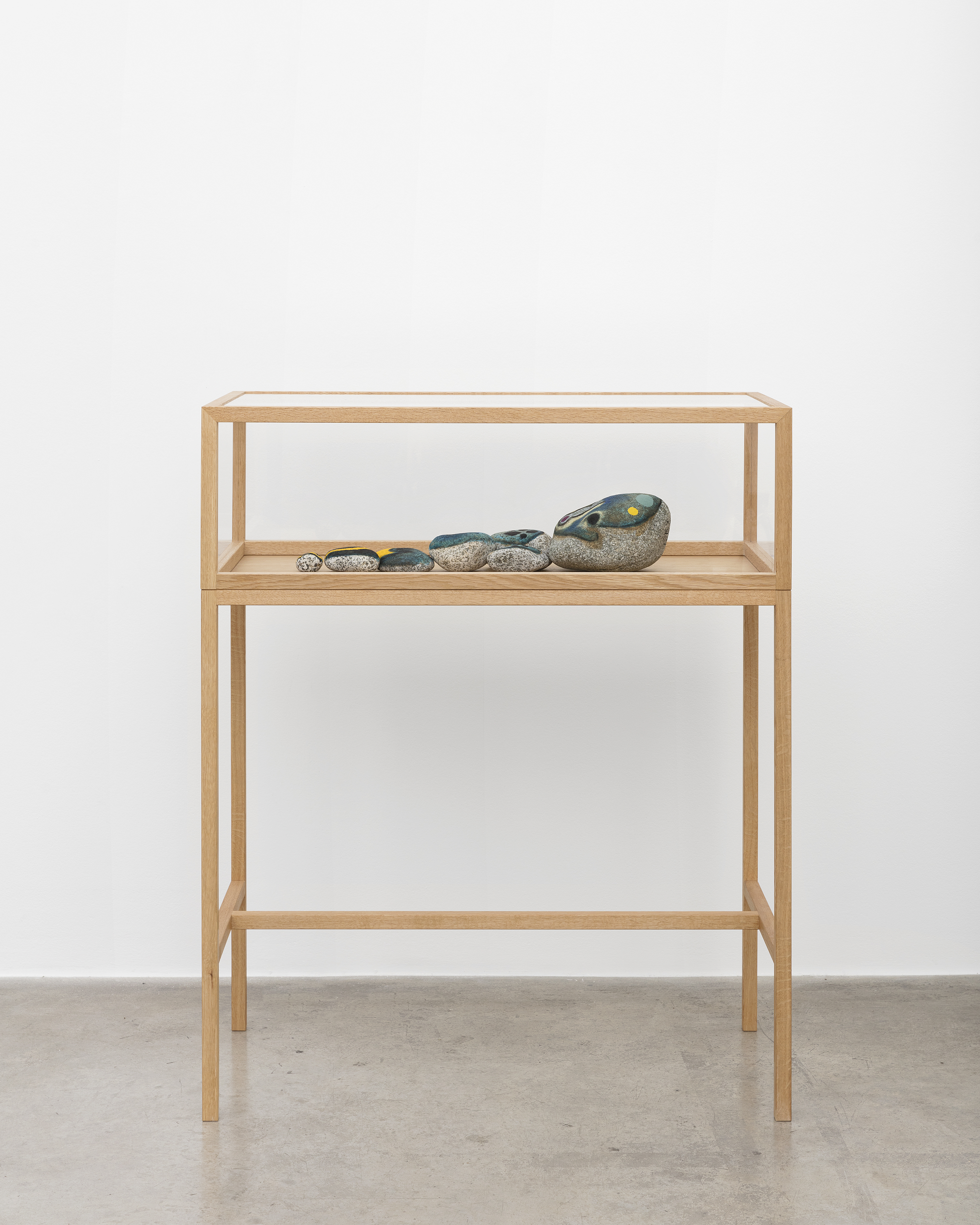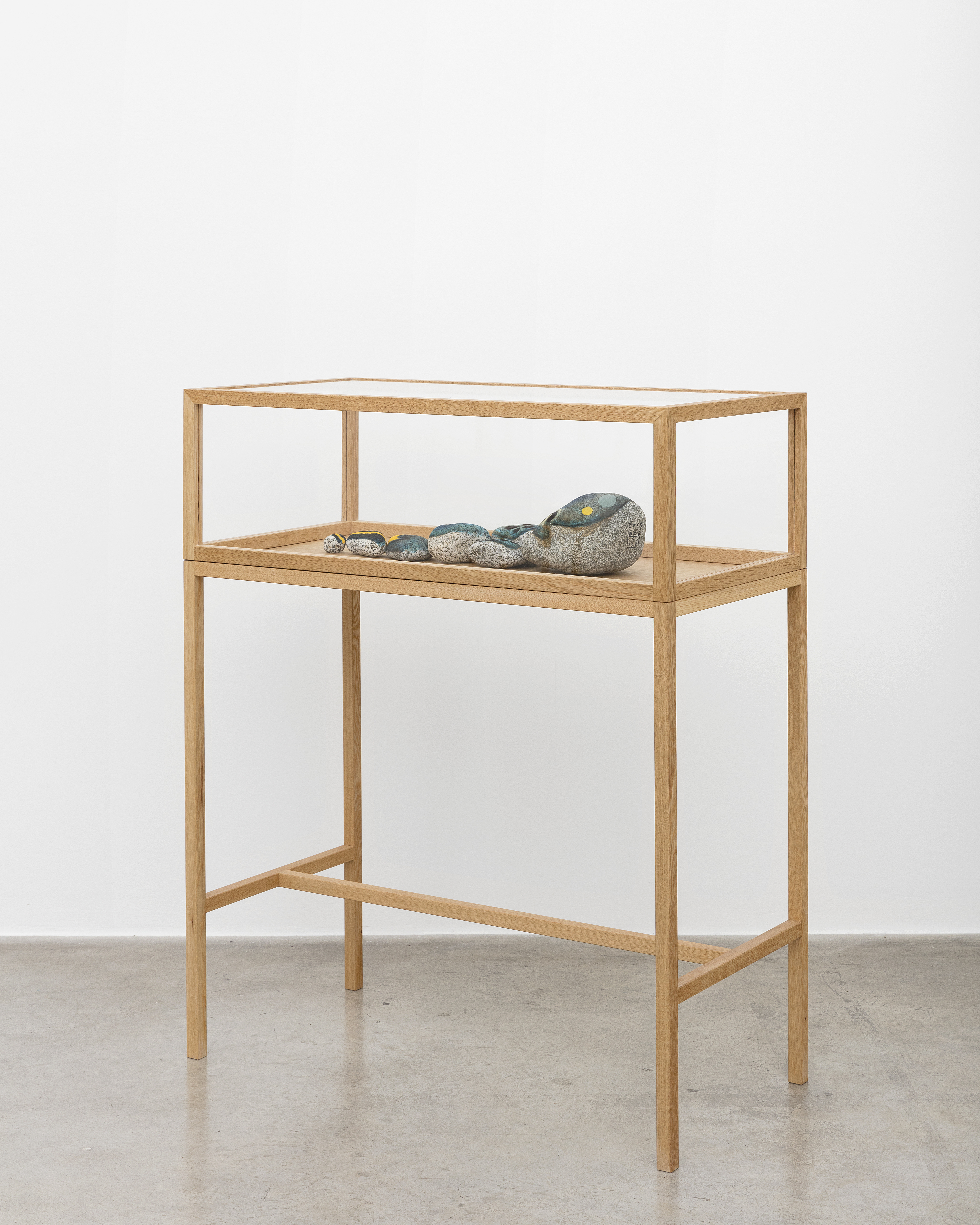 Stone, acrylic, wood case with plexiglass cover