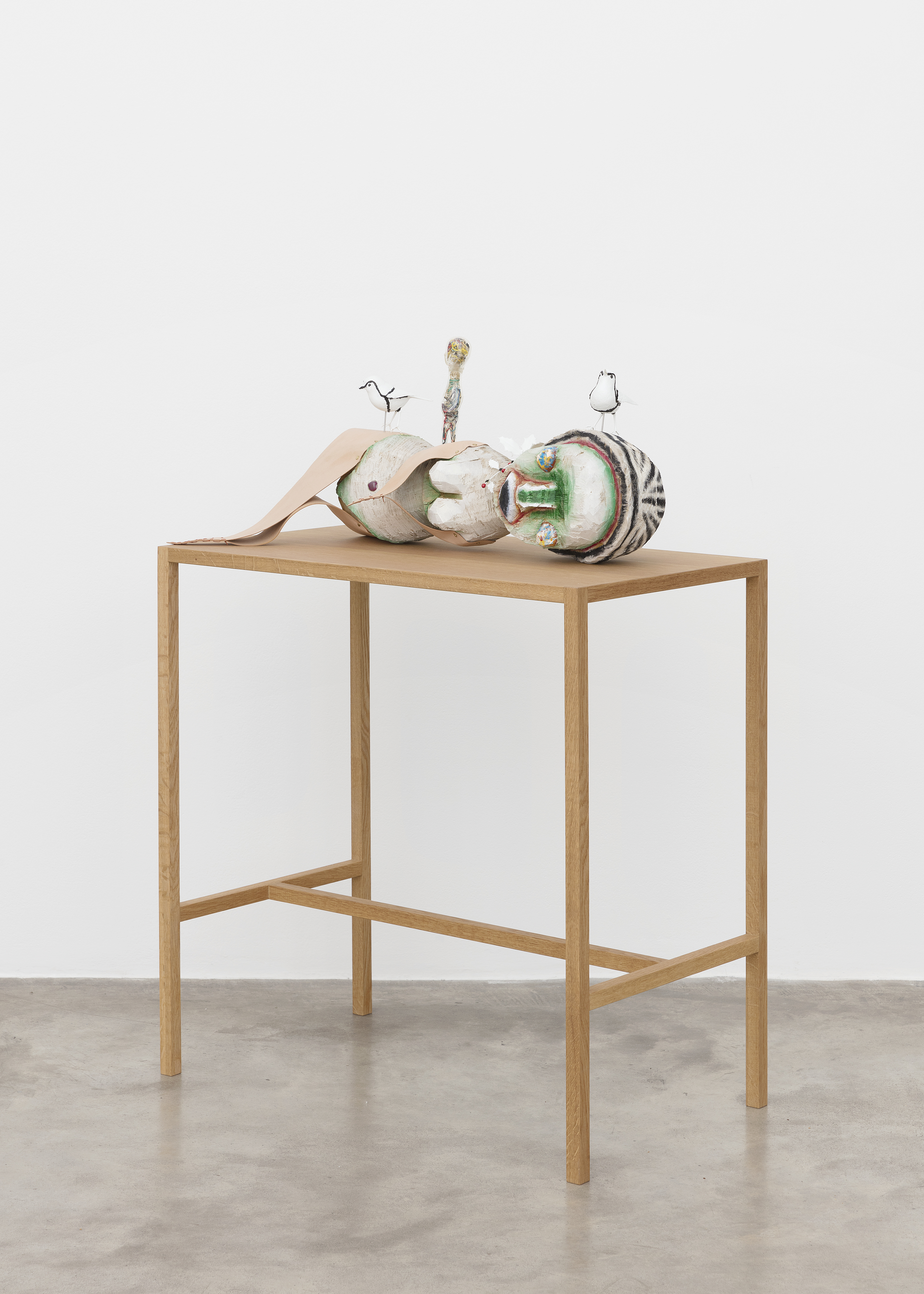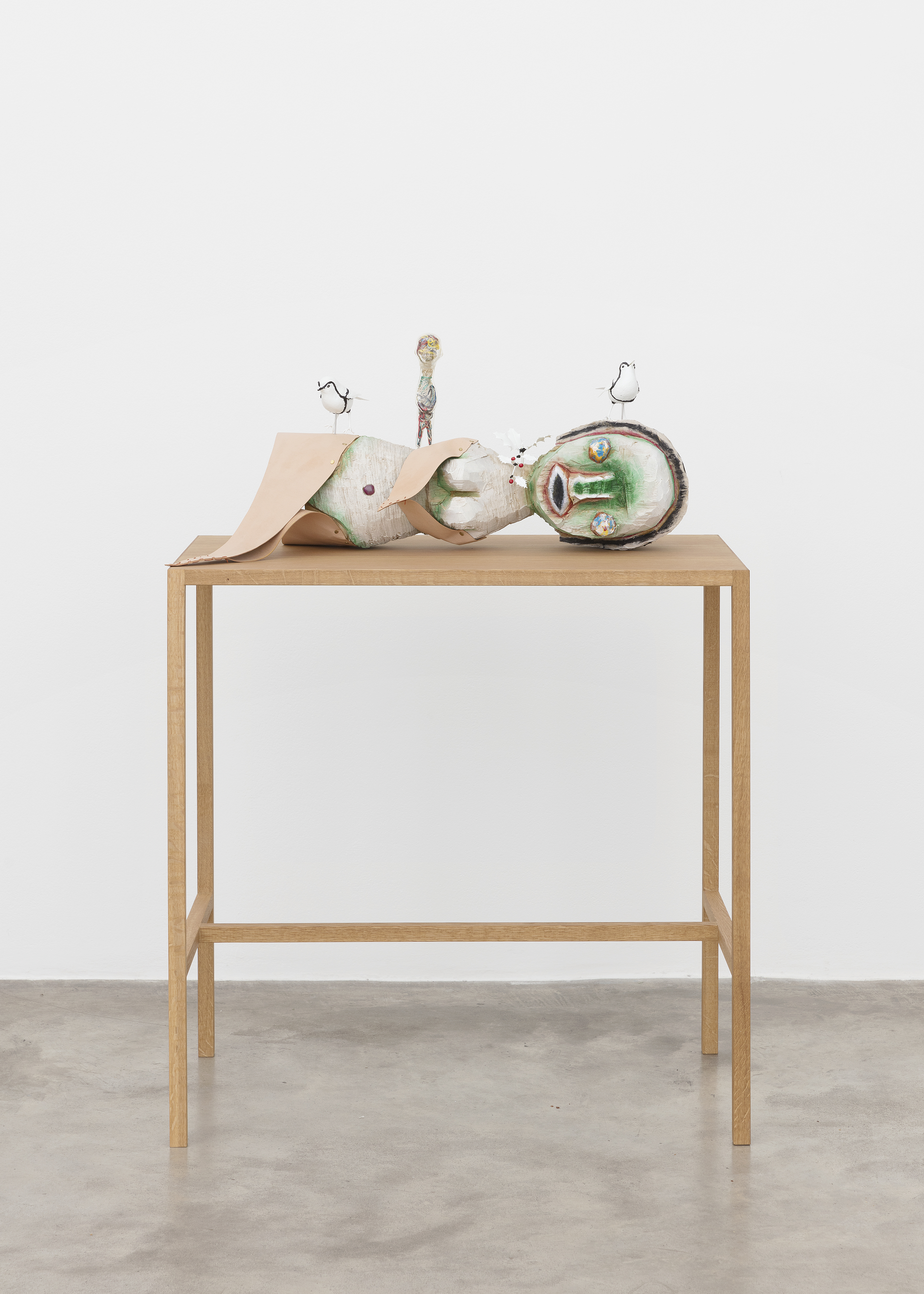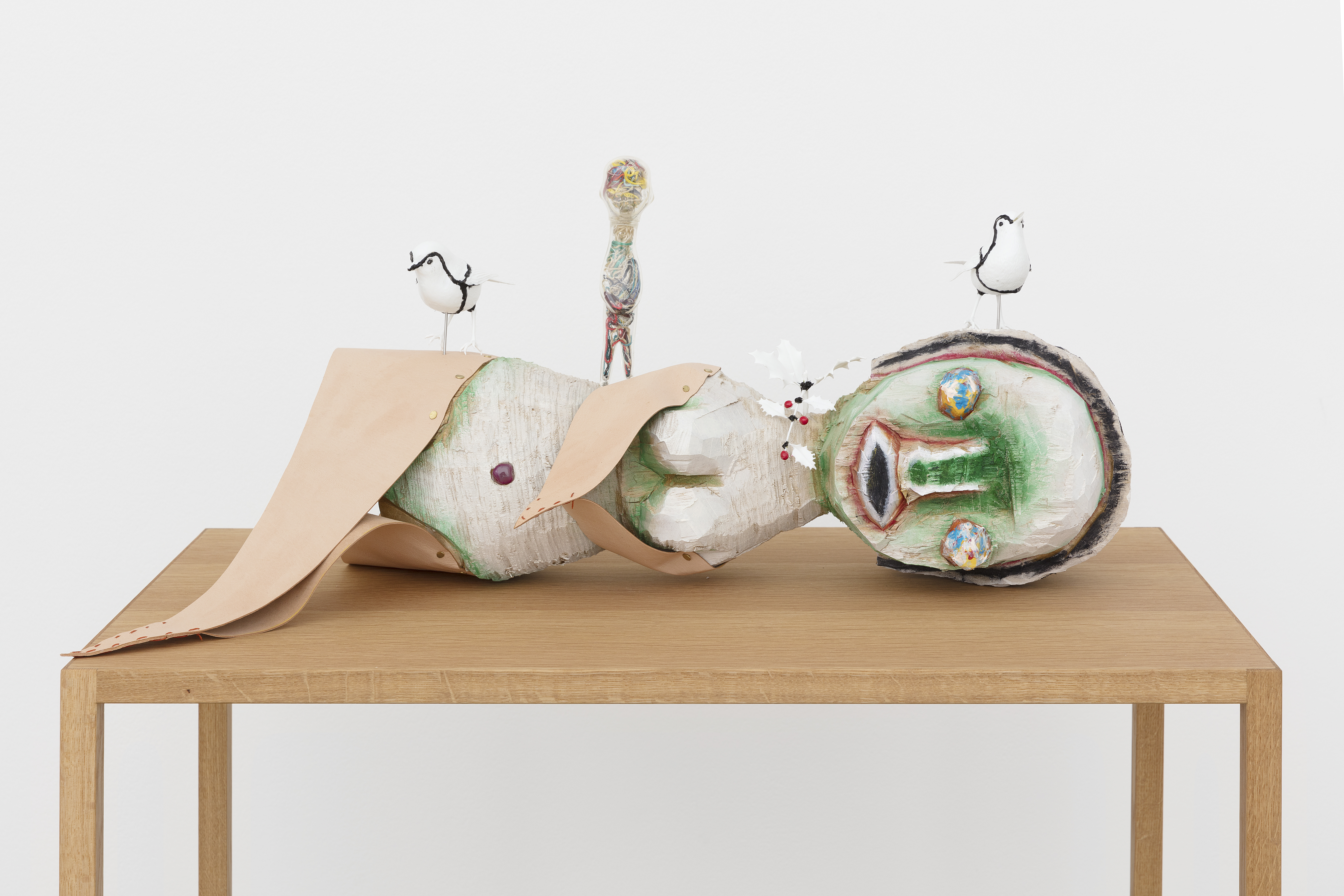 Wood, acrylic, plastic model, soft vinyl, leather, wood pedestal