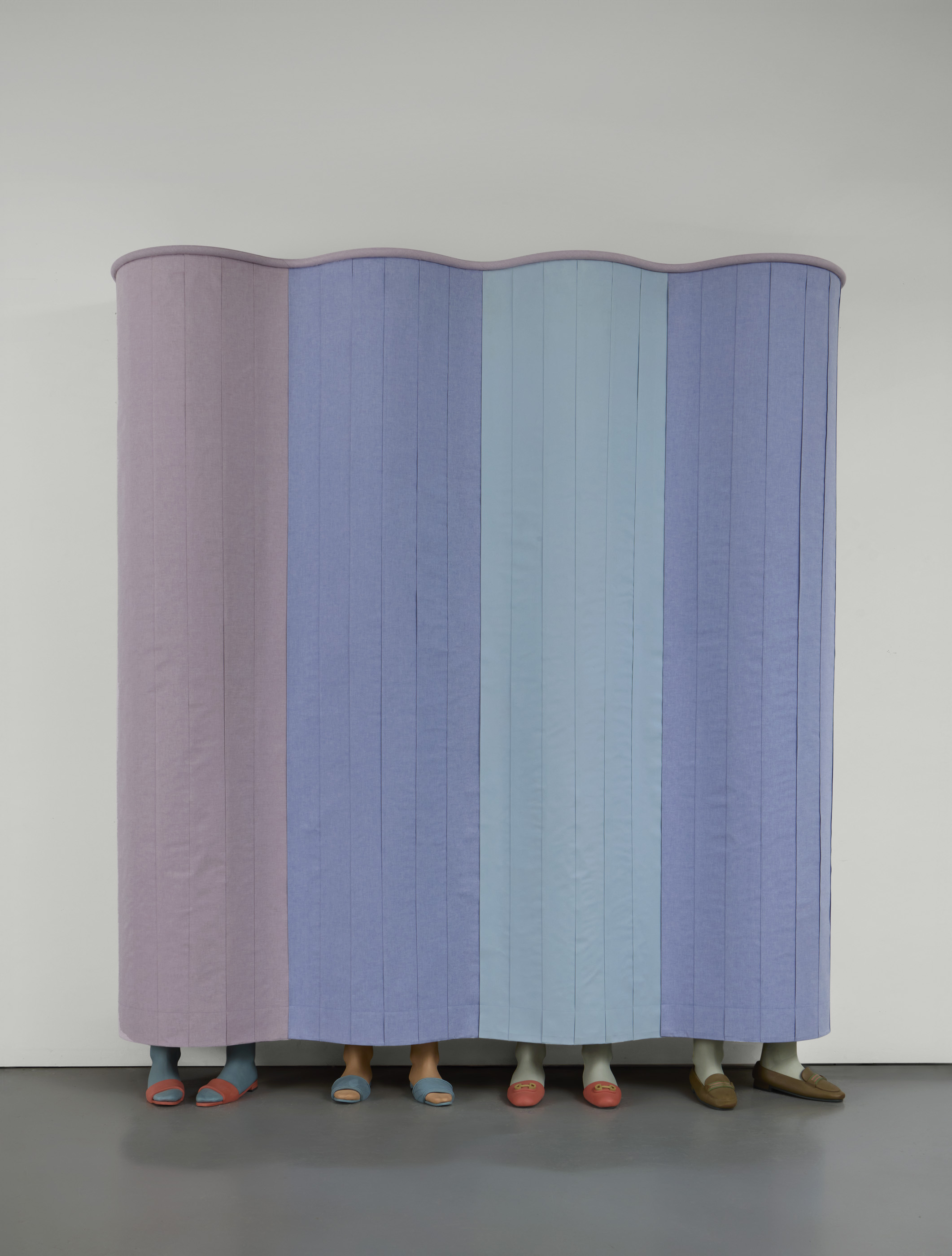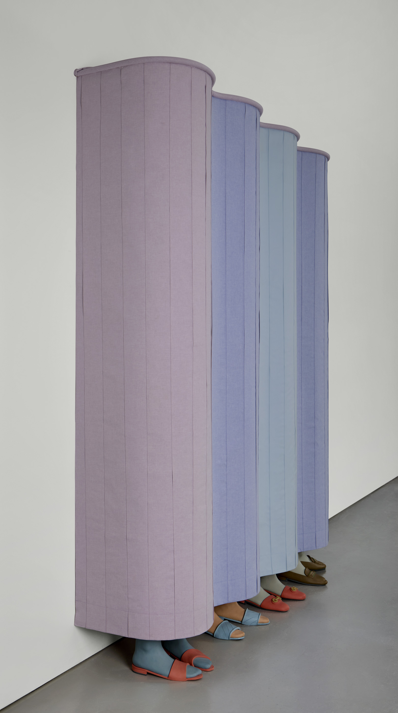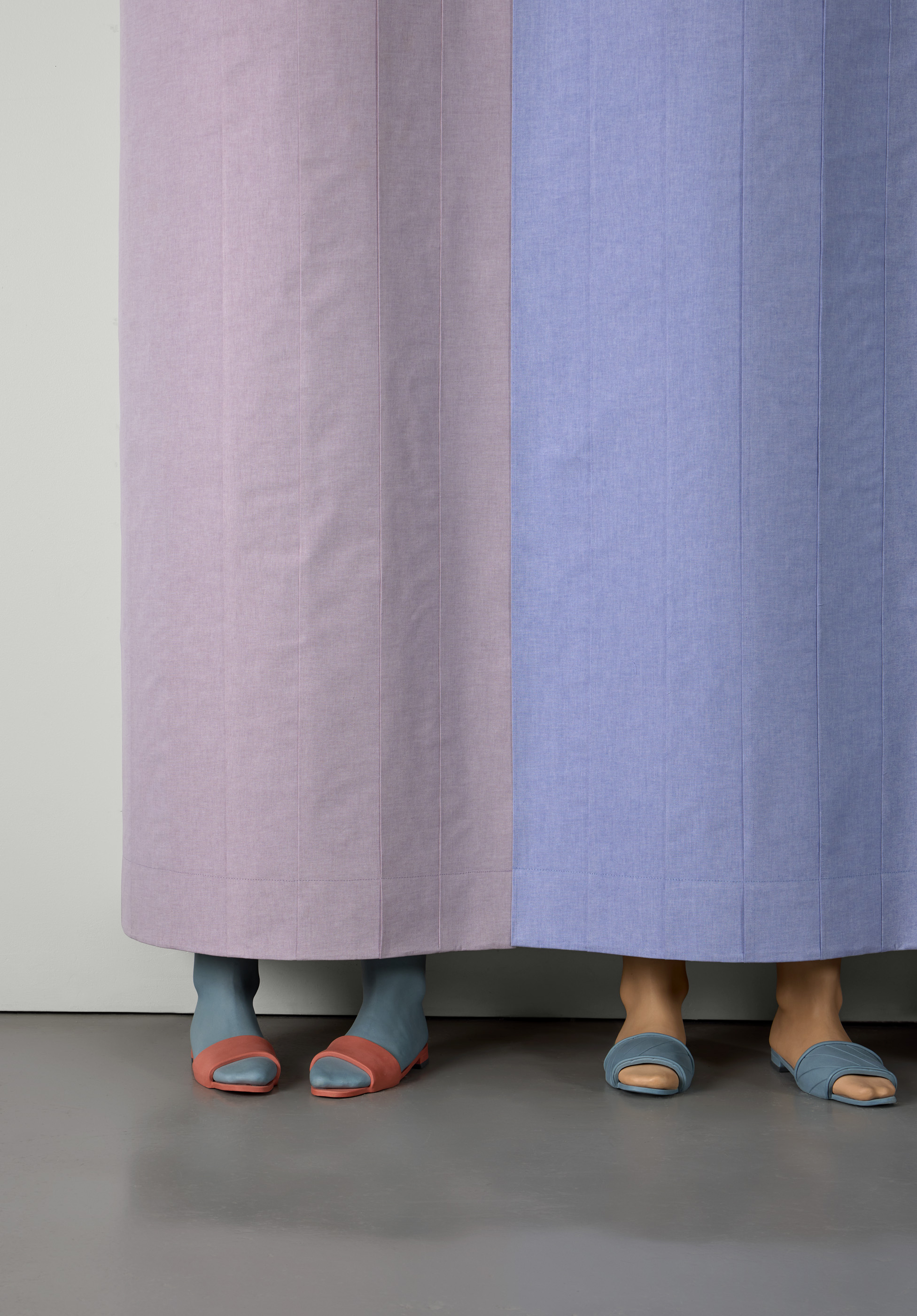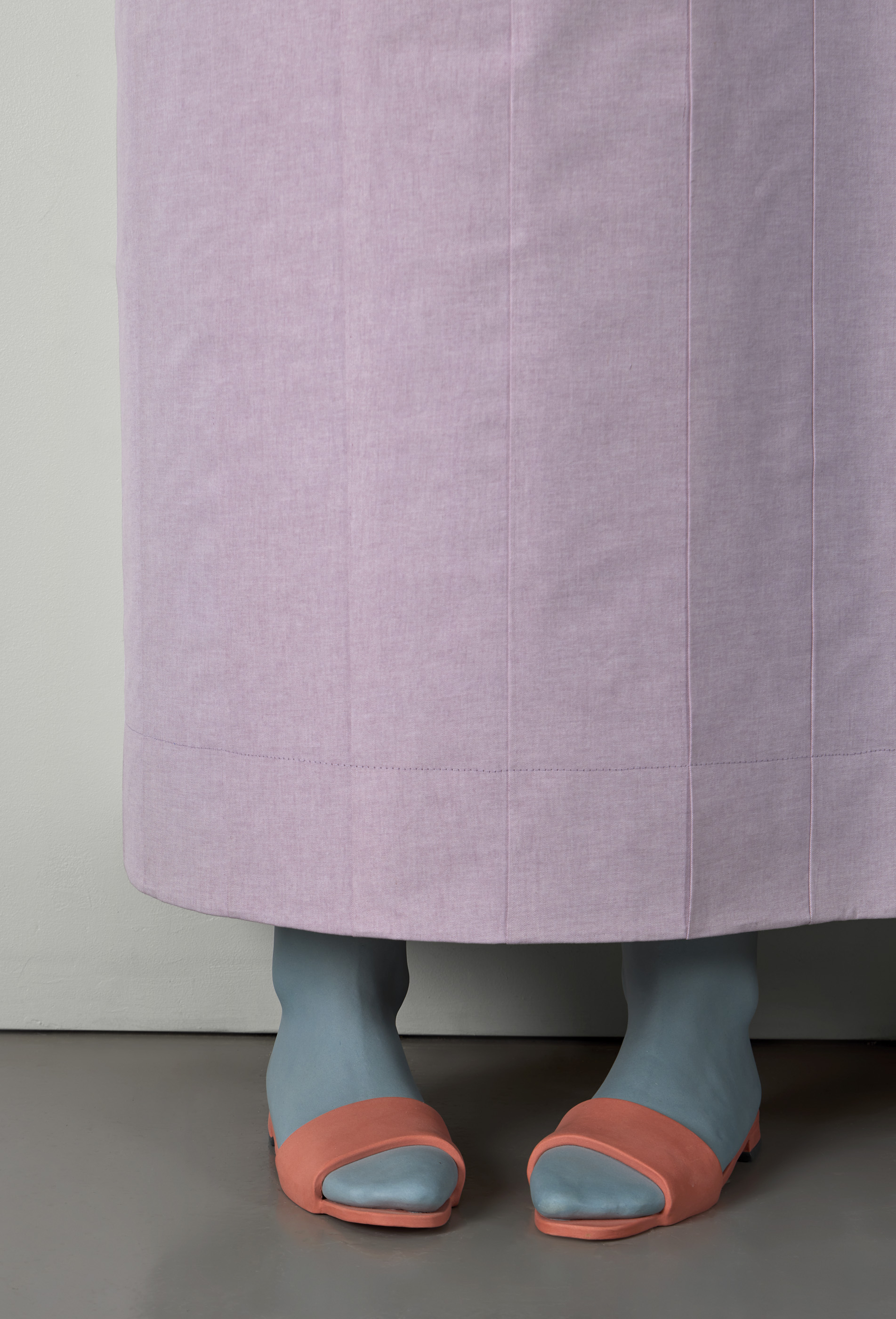 Stoneware, cotton fabric, plywood