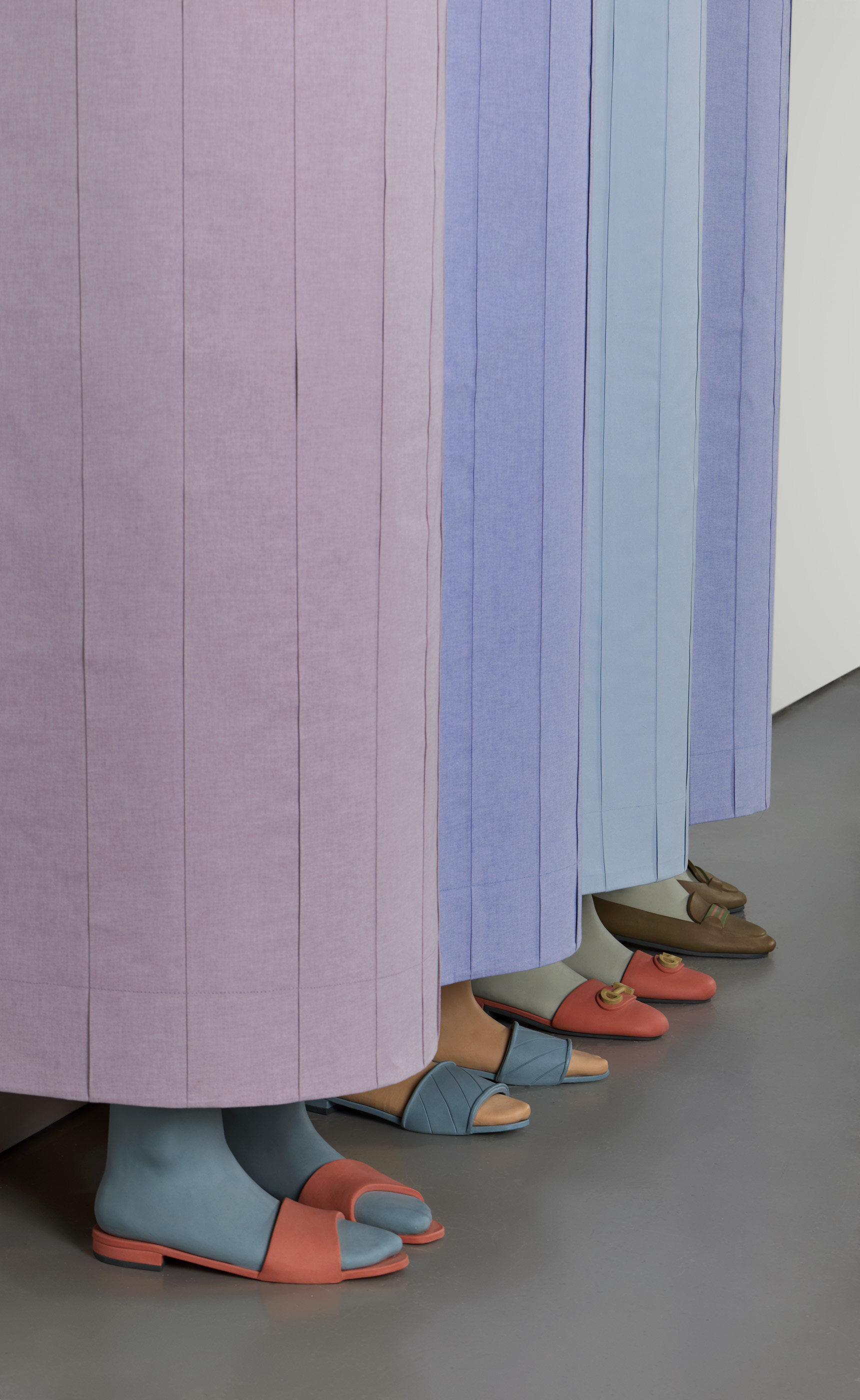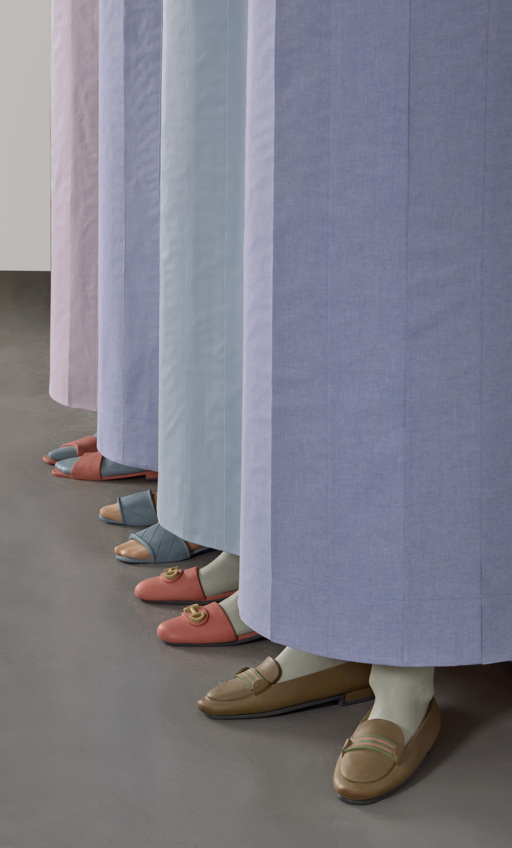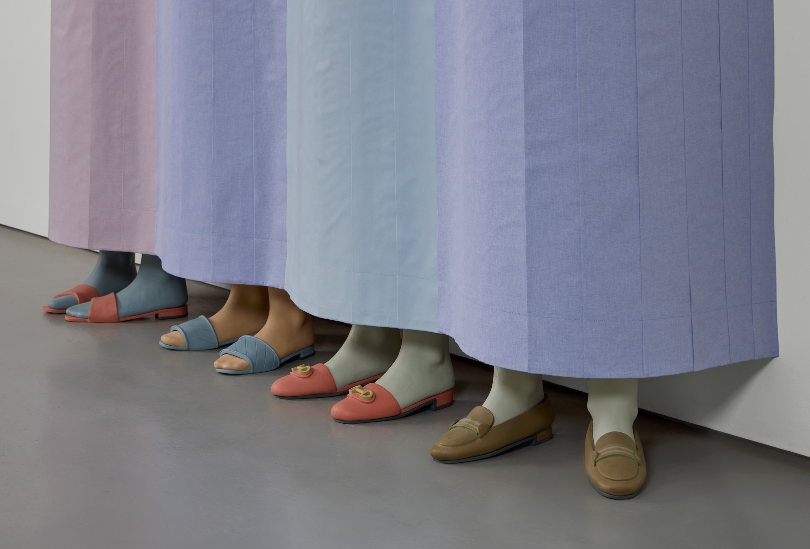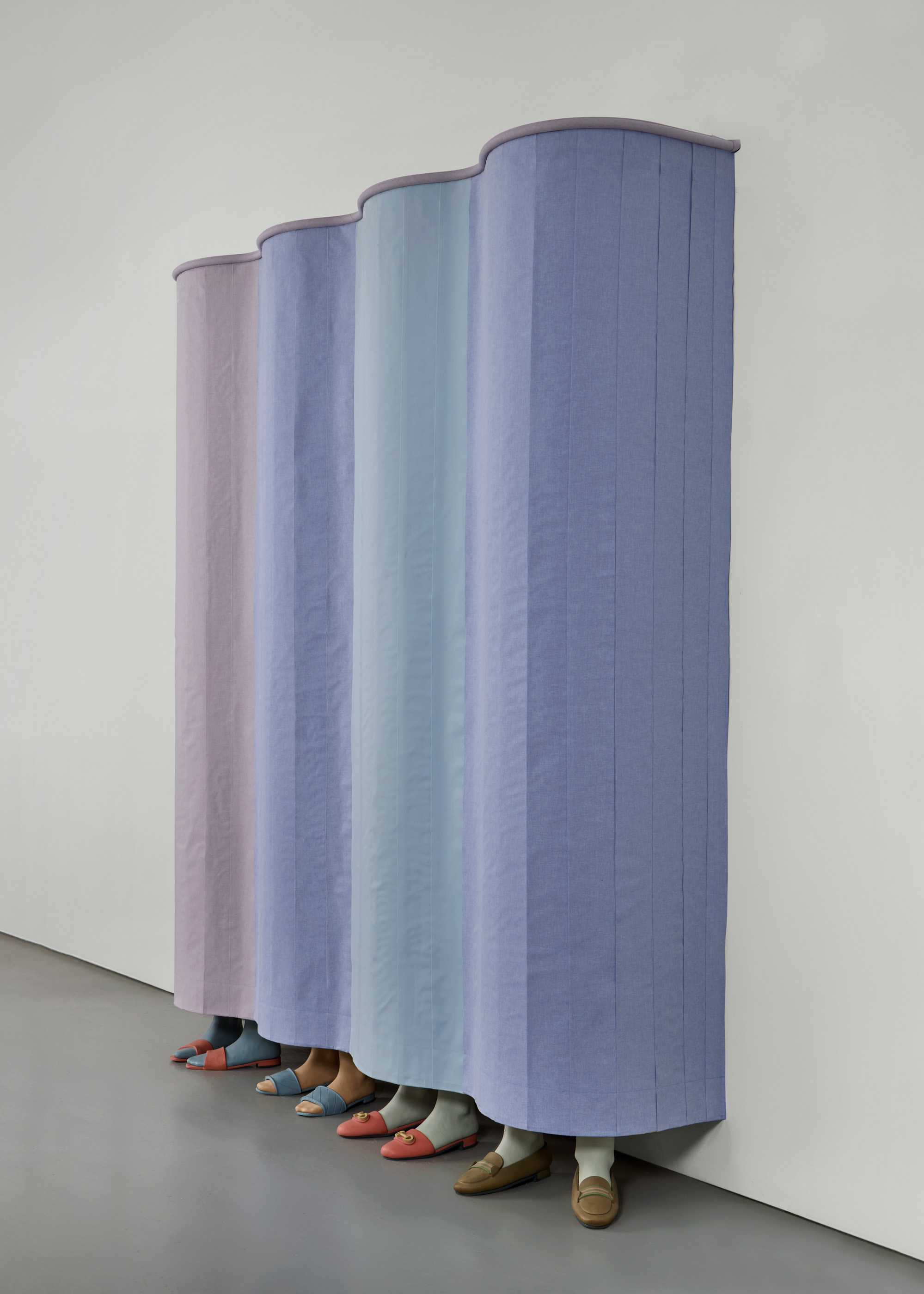 Stoneware, cotton fabric, plywood