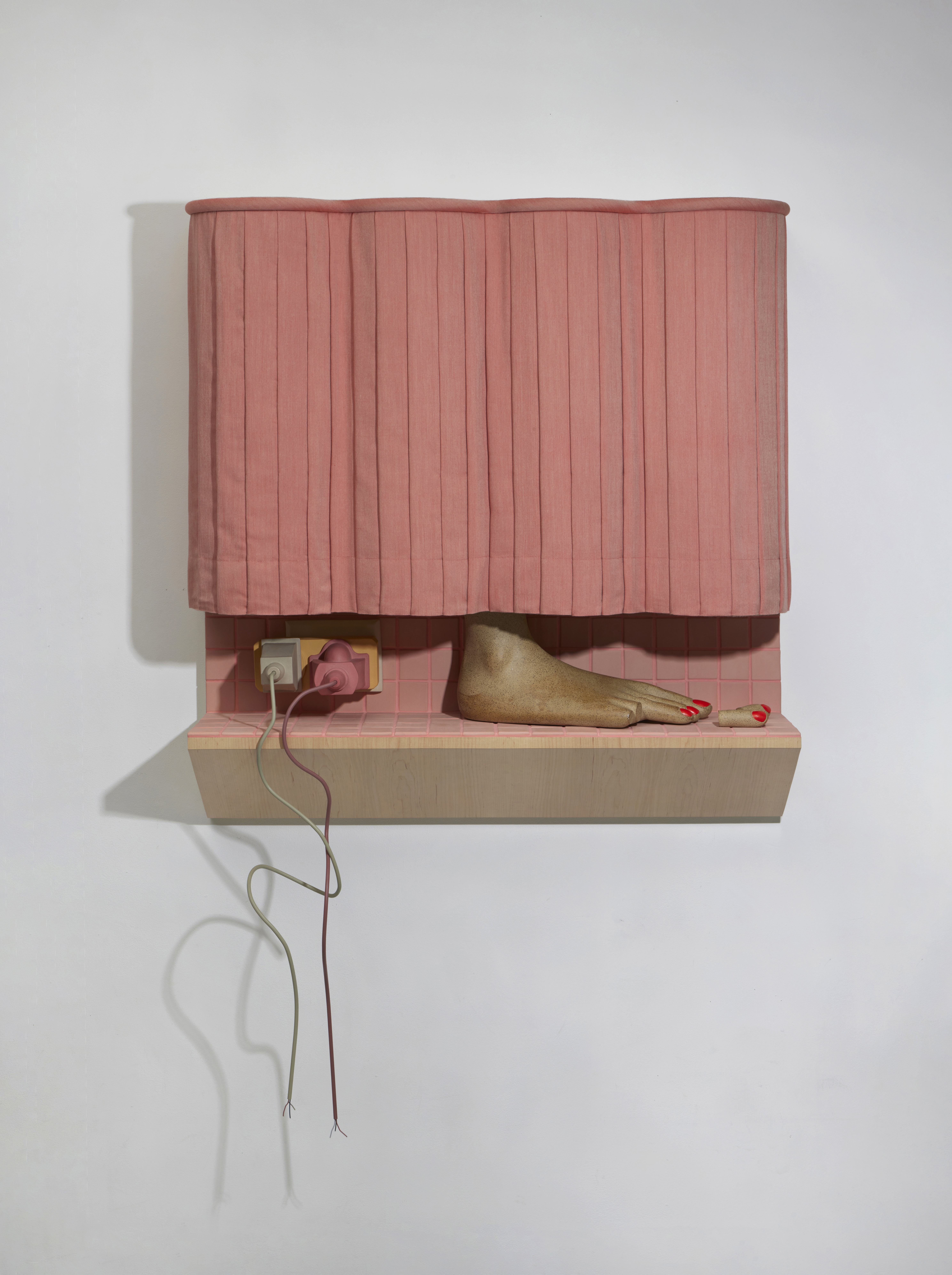Stoneware, oil painted pedicure, cotton fabric, plywood, painted steel wire