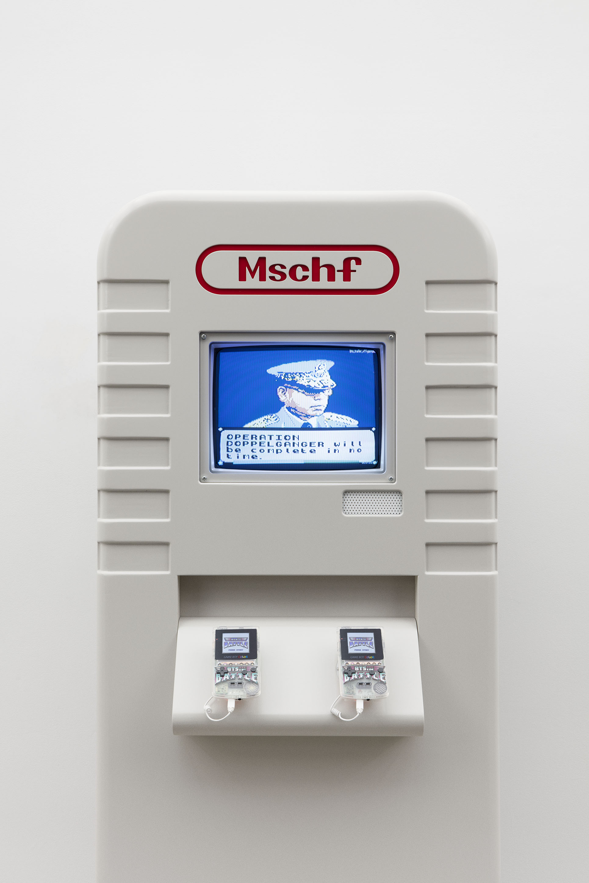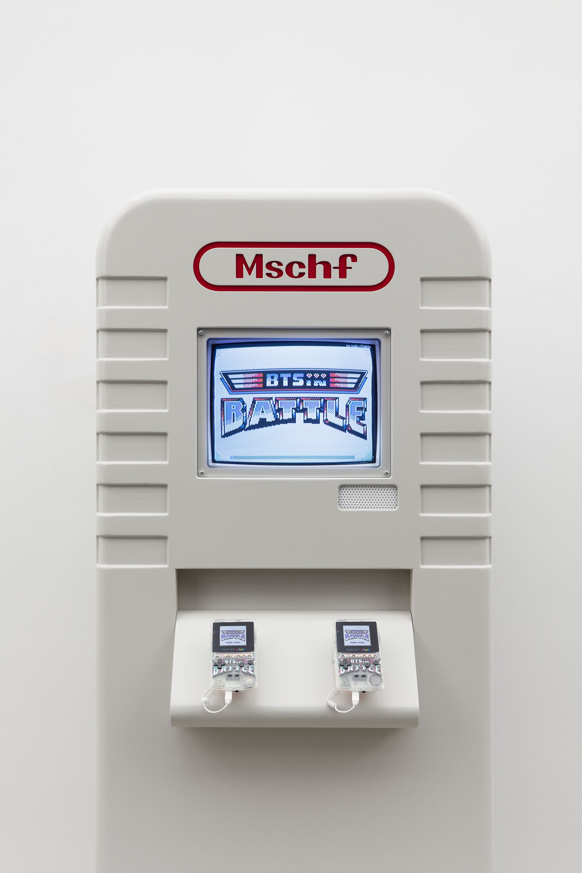 Wood, Foam, CRT Monitor, Game Boys, Game Cartridges, Videogame (BTS In Battle, 2022), Video file