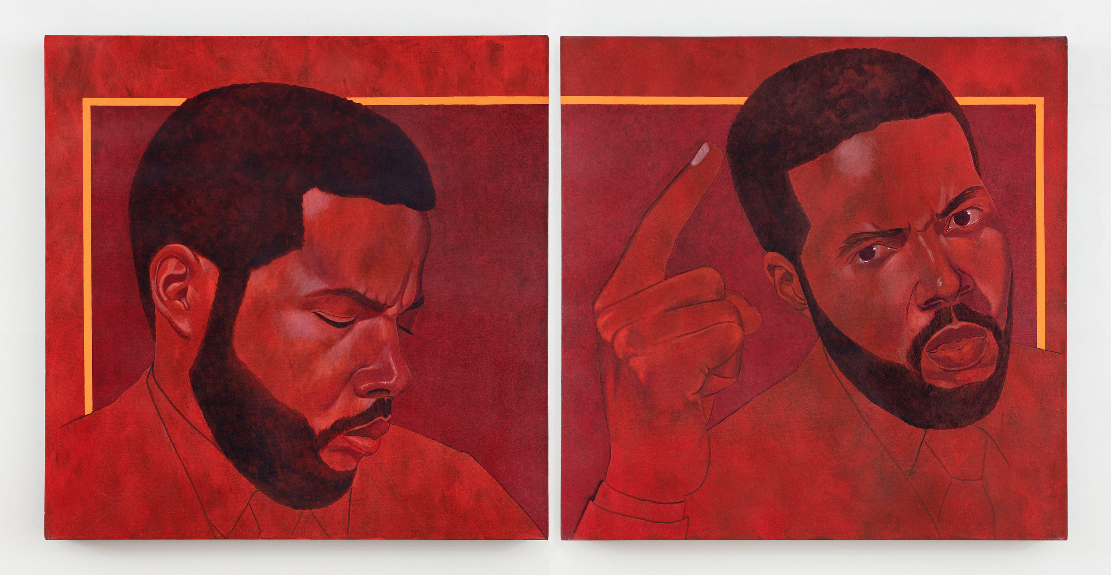 Acrylic and pastel on canvas; two panels