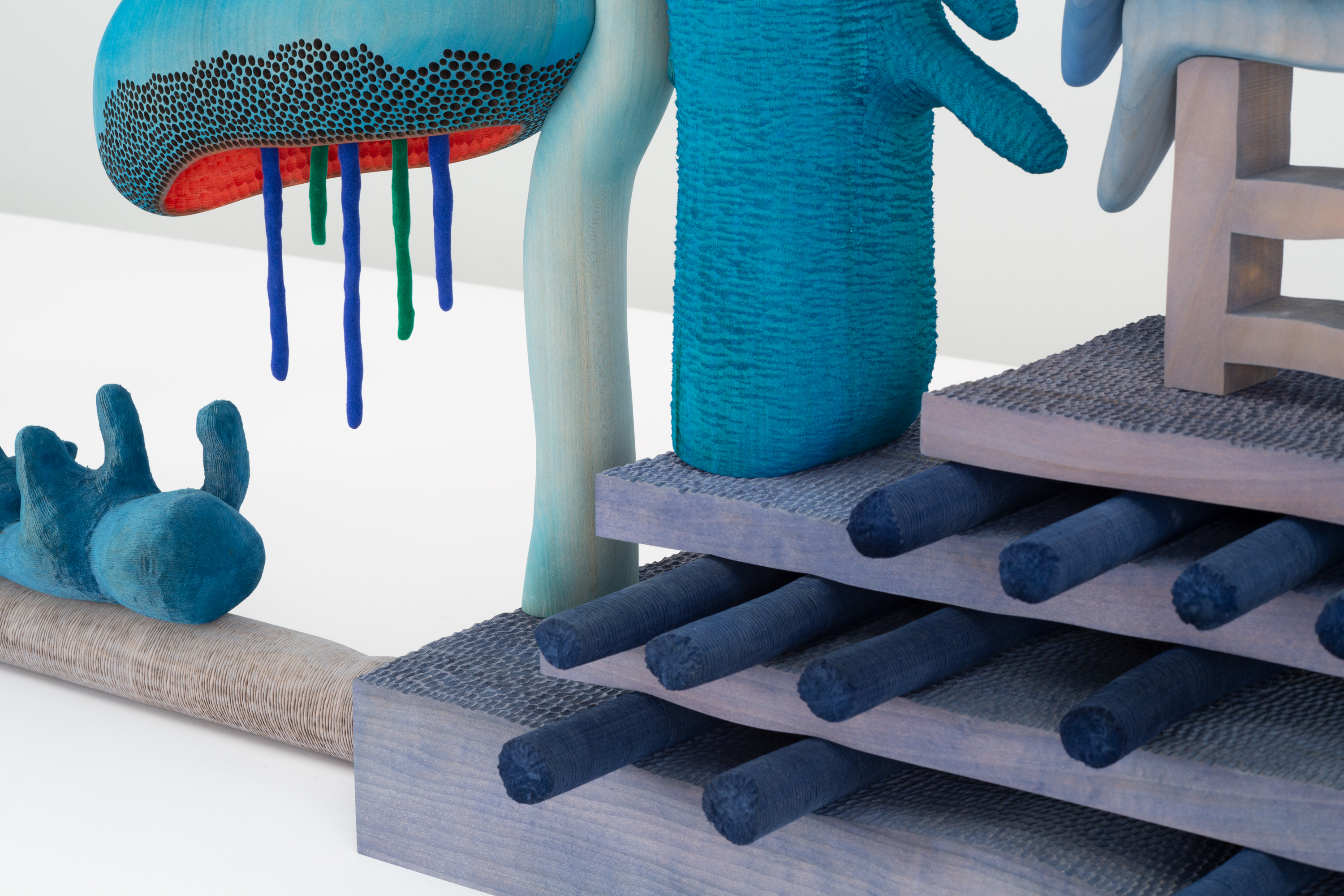 Basswood, dye, gouache, flocking, plastic, steel