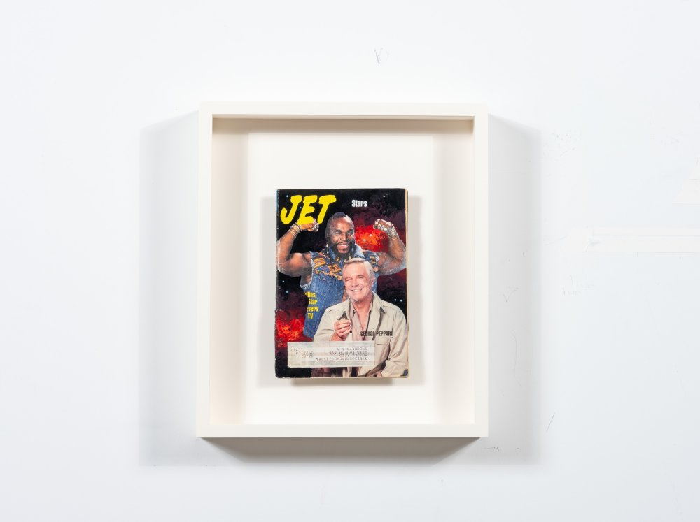 "Jet" magazine, oil, enamel, pigment, and acrylic