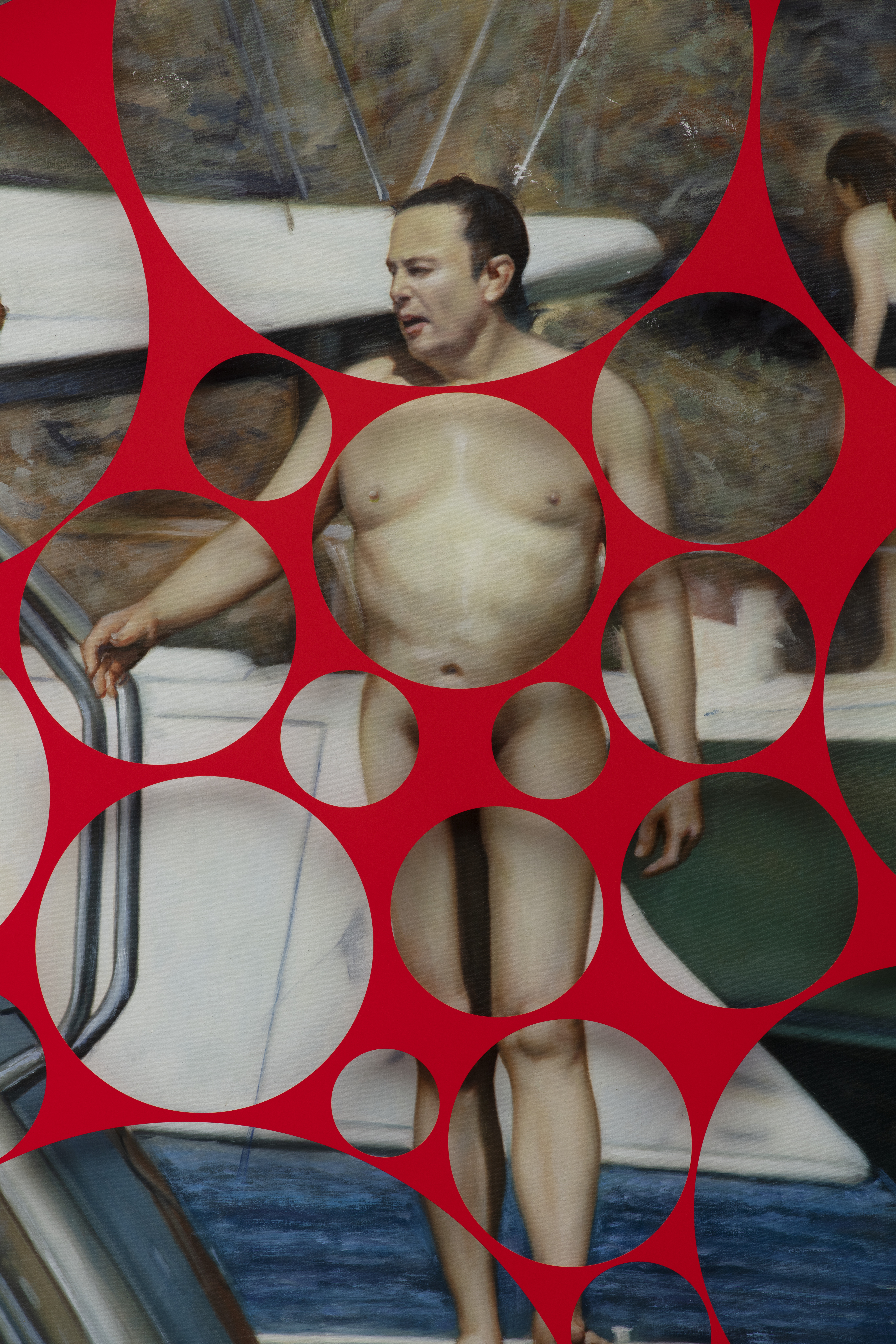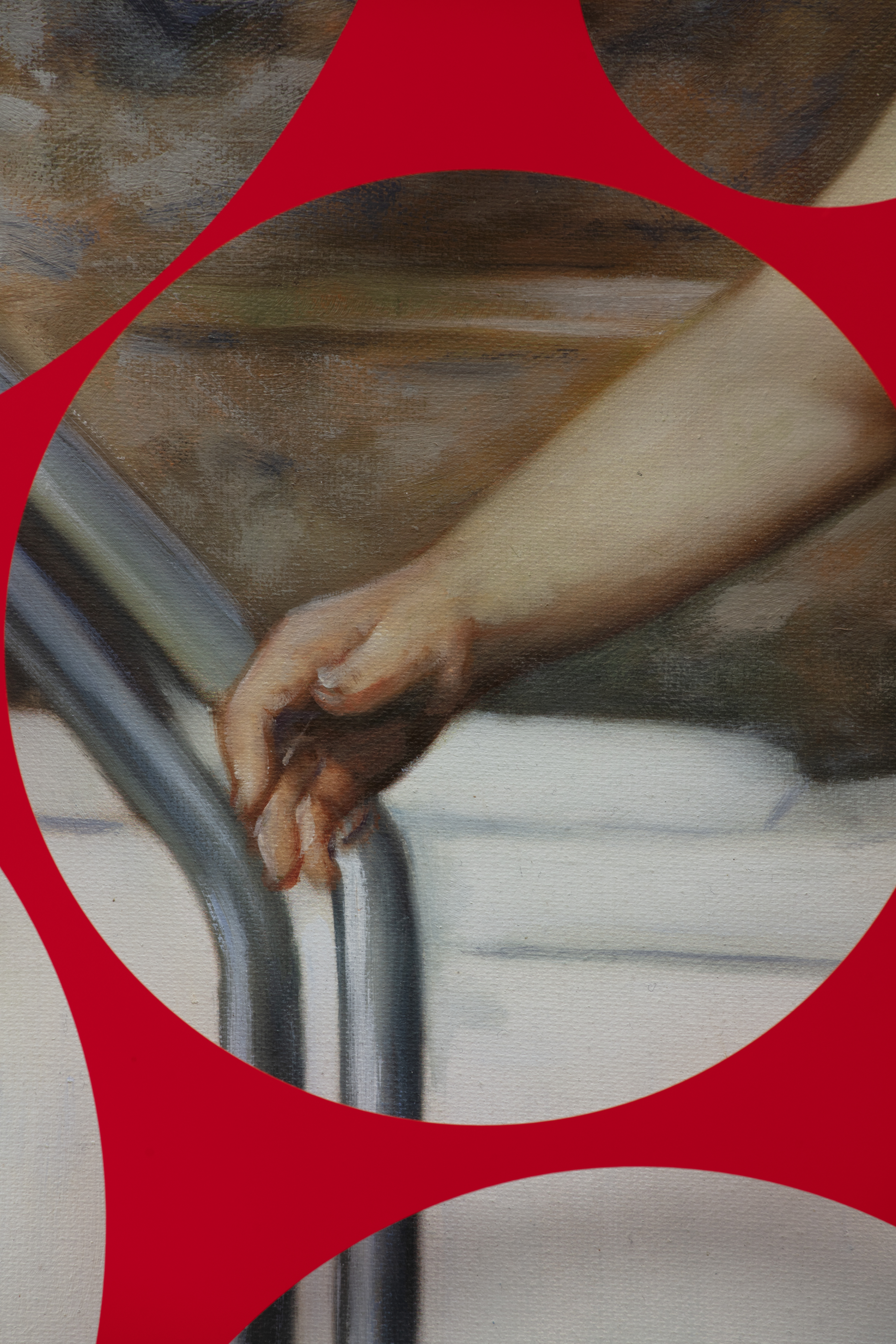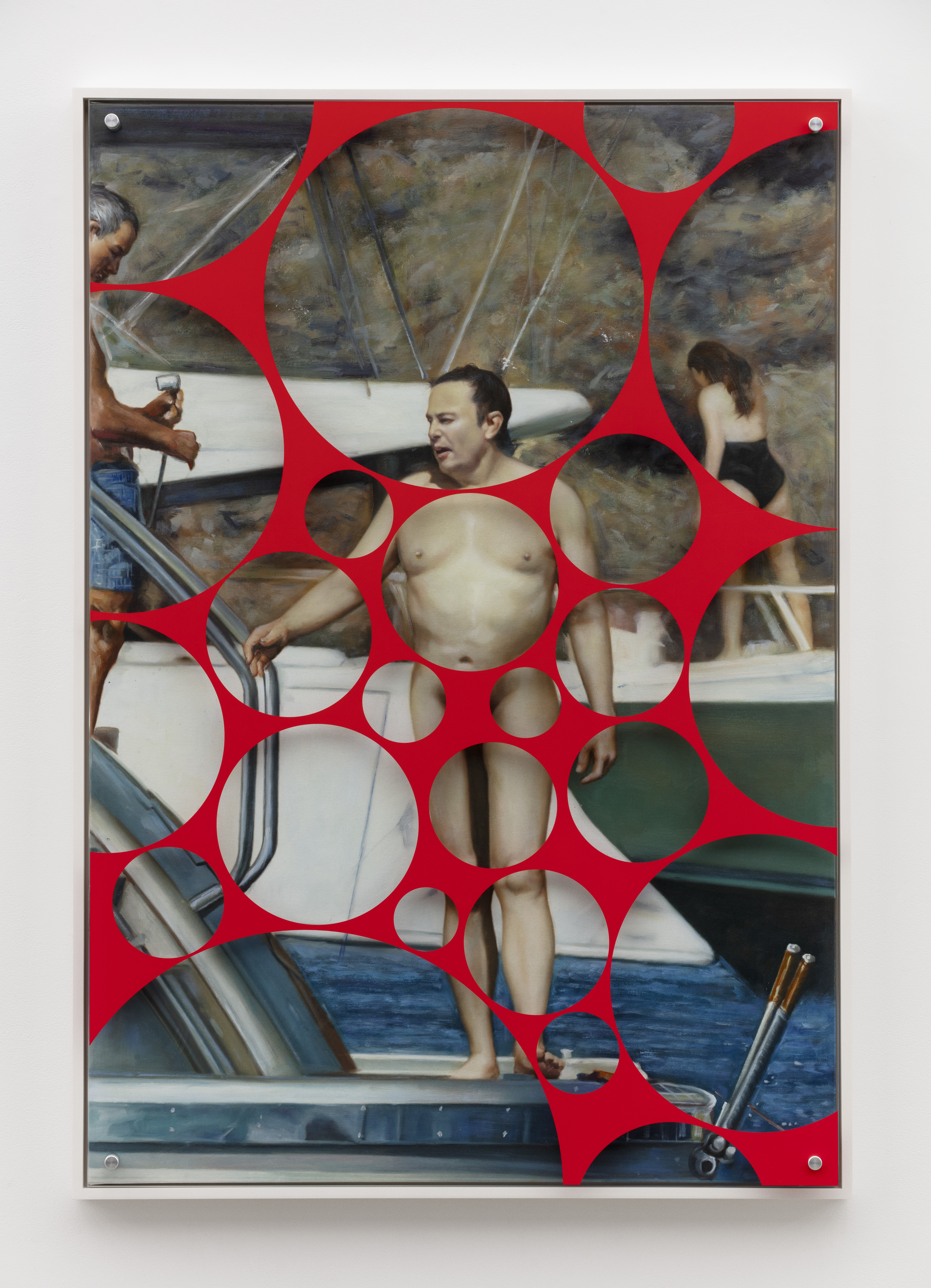 Oil on canvas, glass, hardware