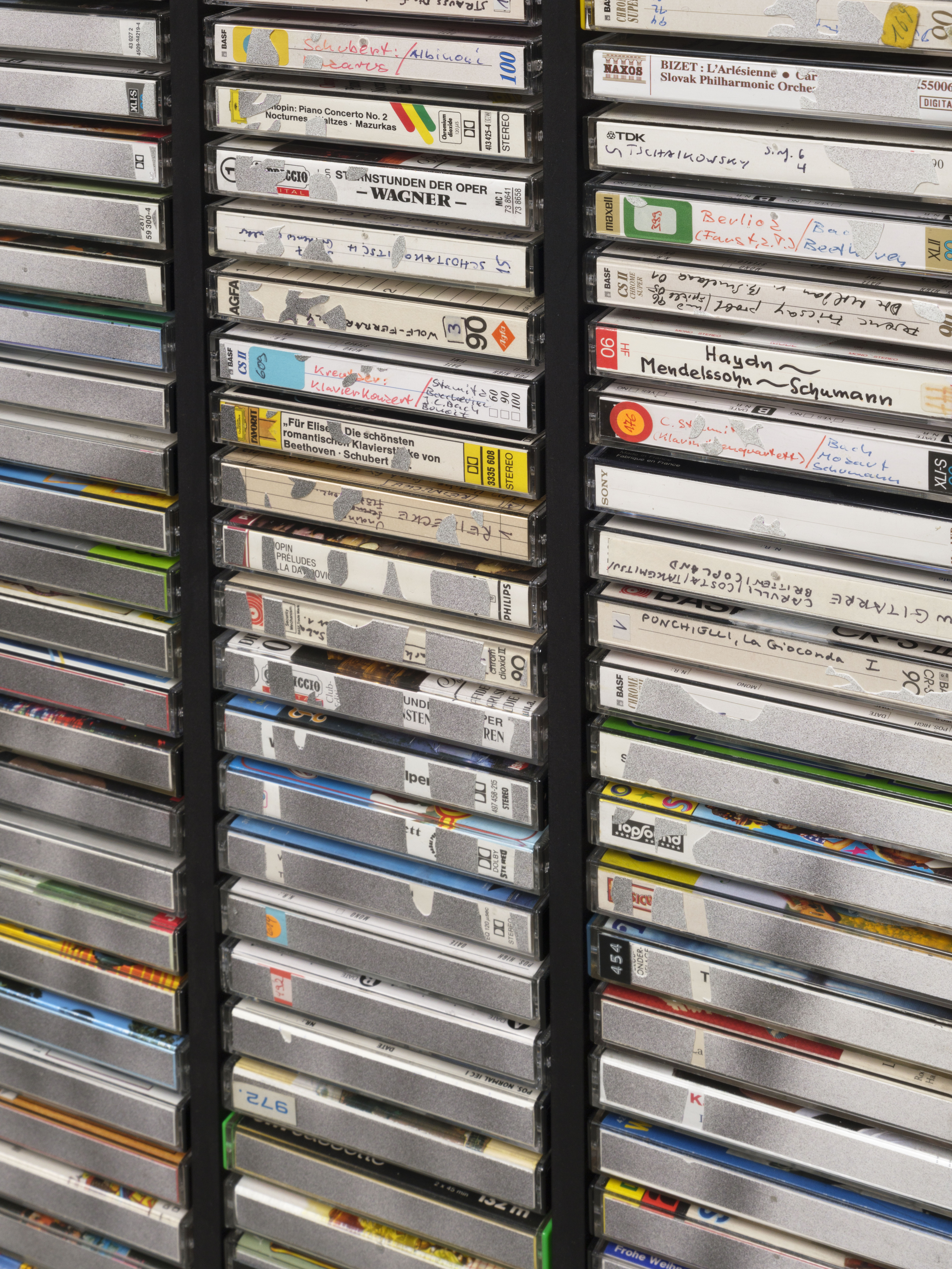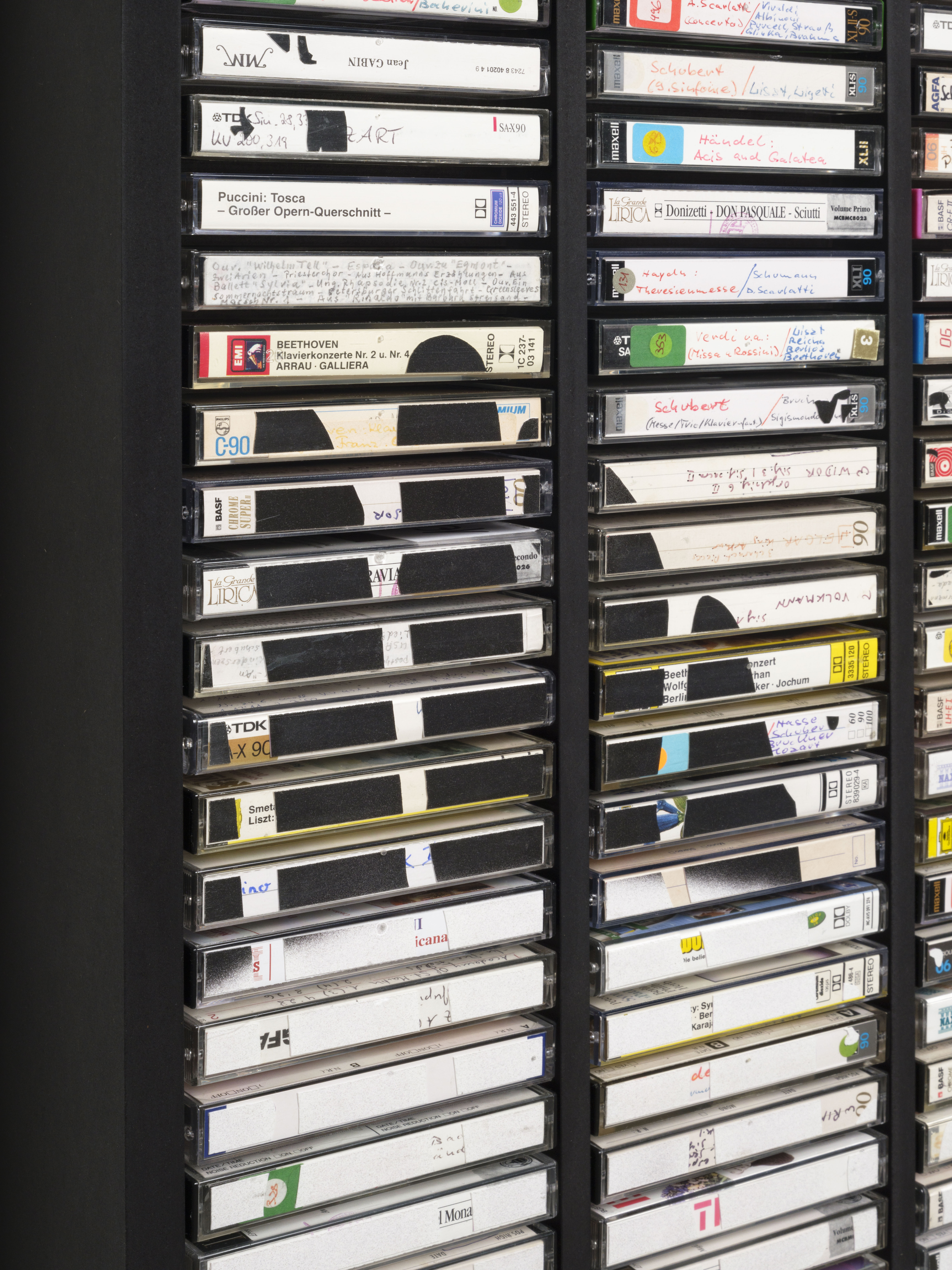Ink jet print, plastic boxes in wooden case