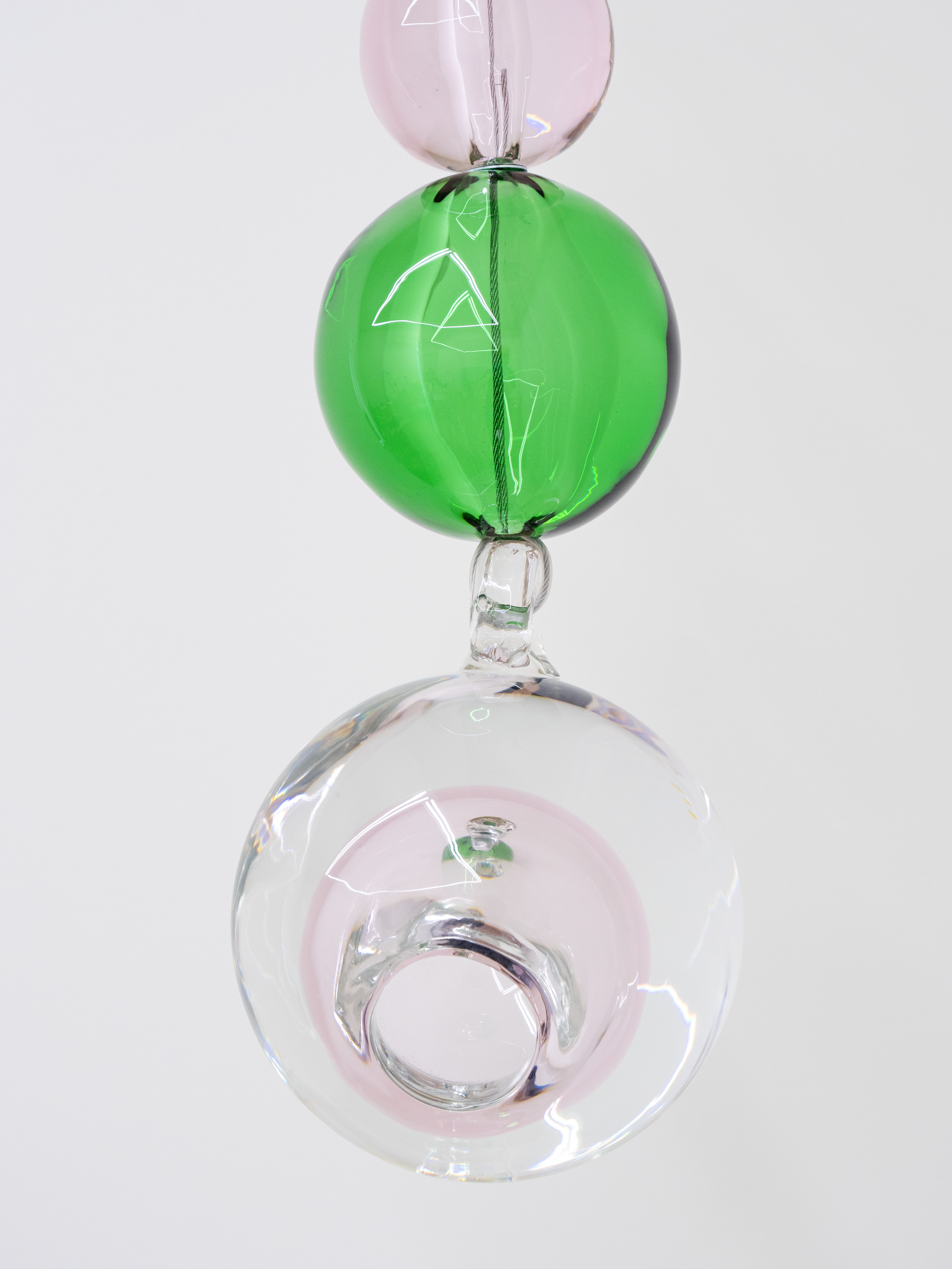 Pink, crystal and green Murano glass, stainless steel