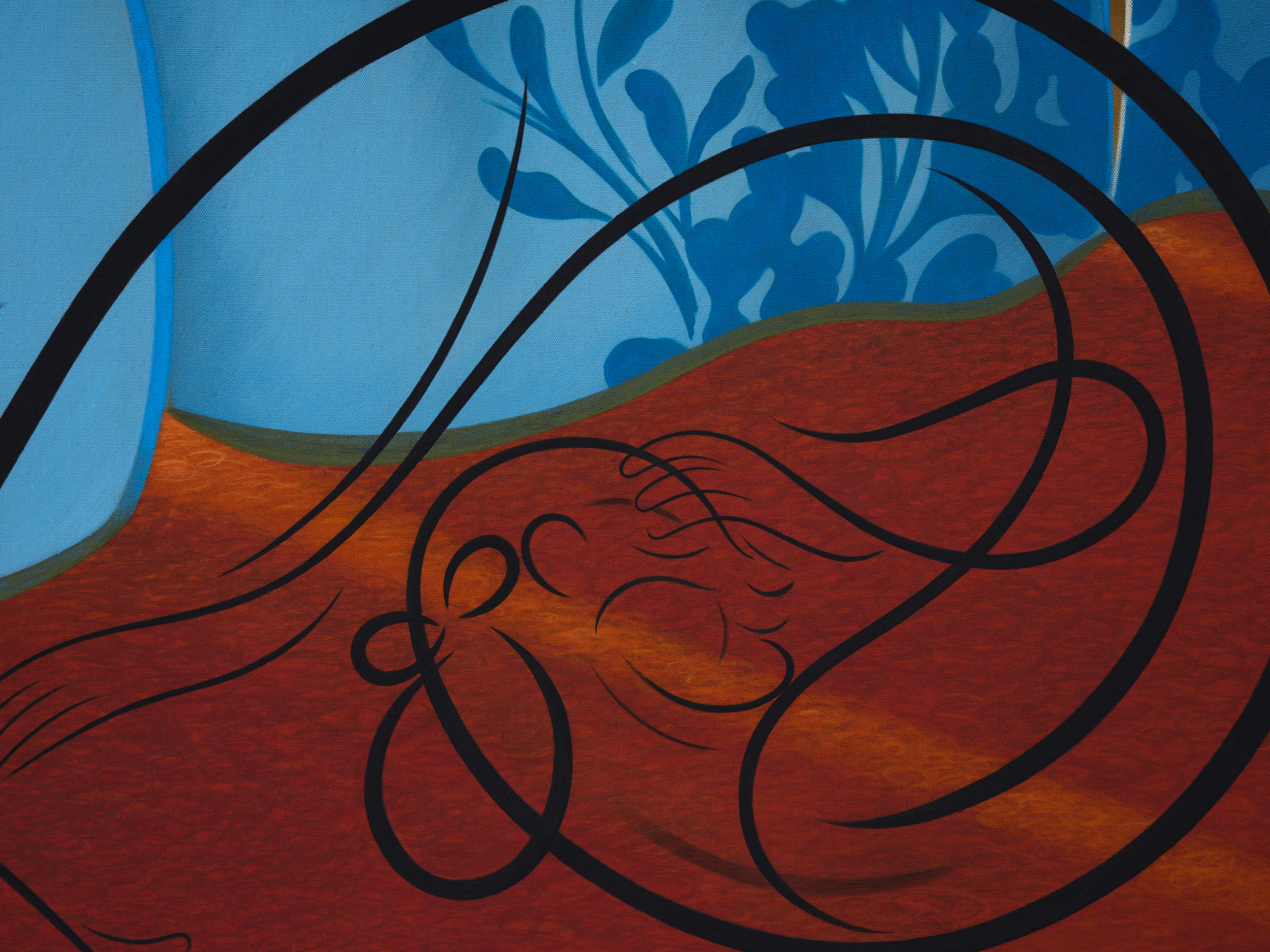 Flashe, graphite, and wooden pencil shavings on linen