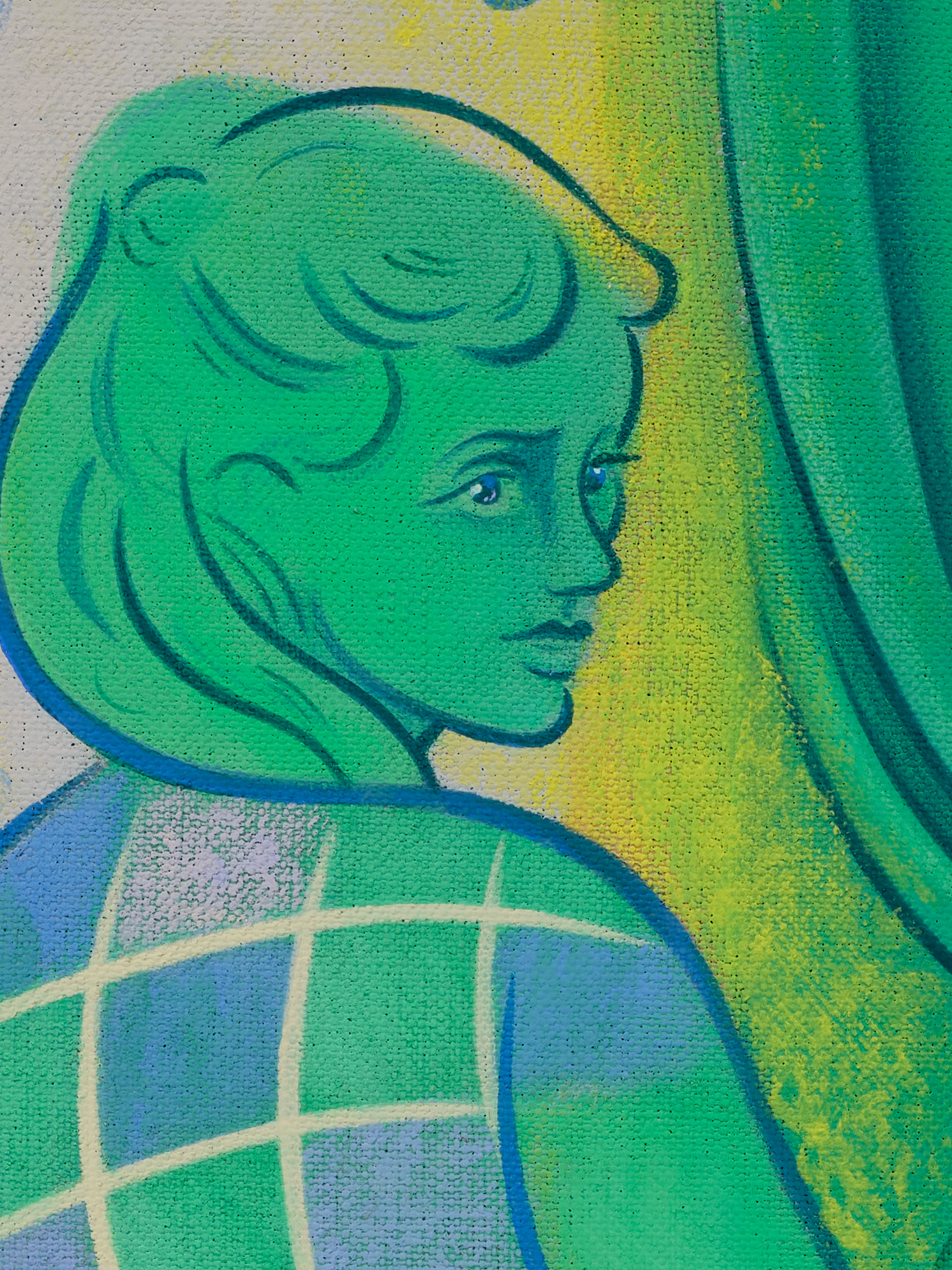 Flashe and acrylic on linen mounted to panel