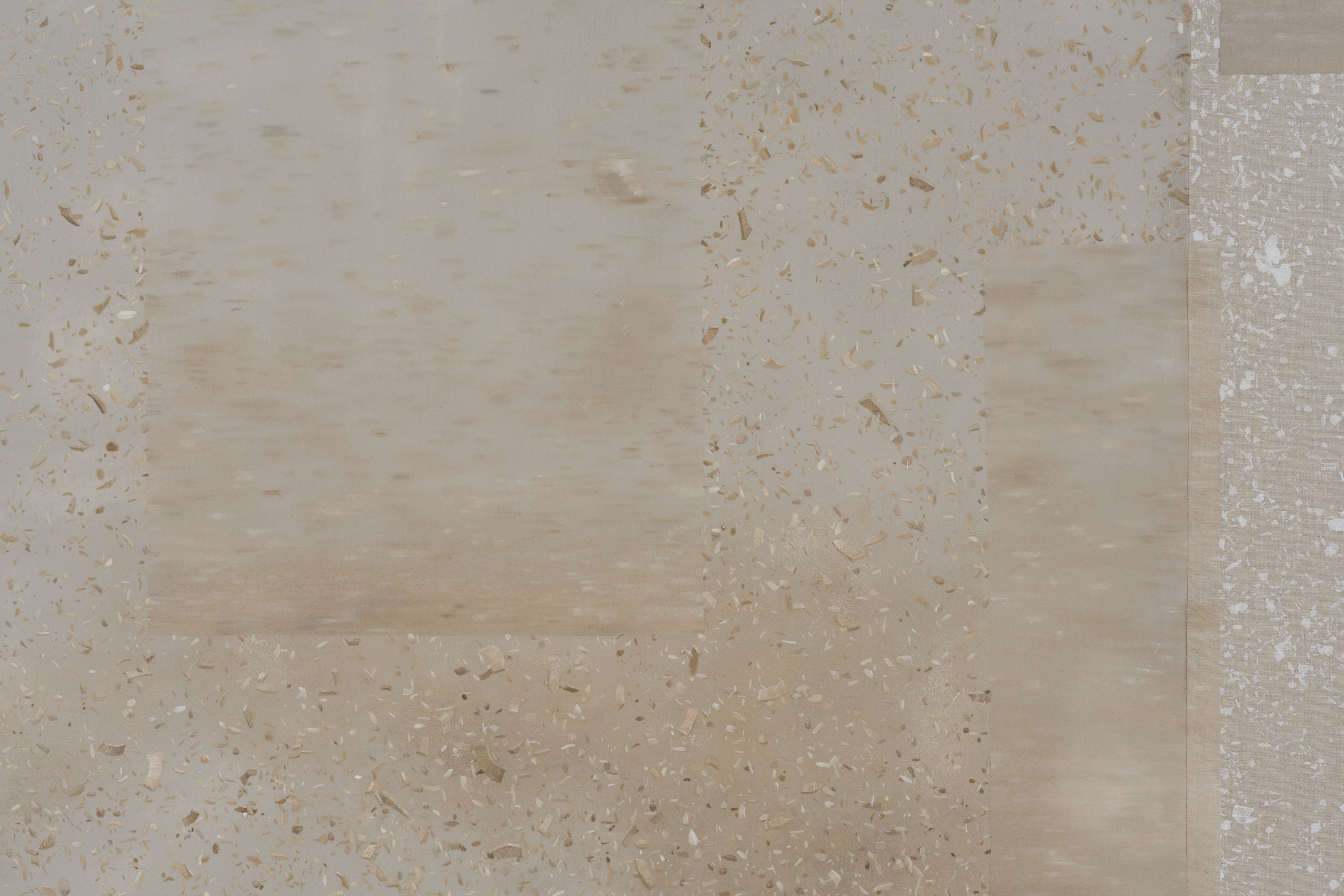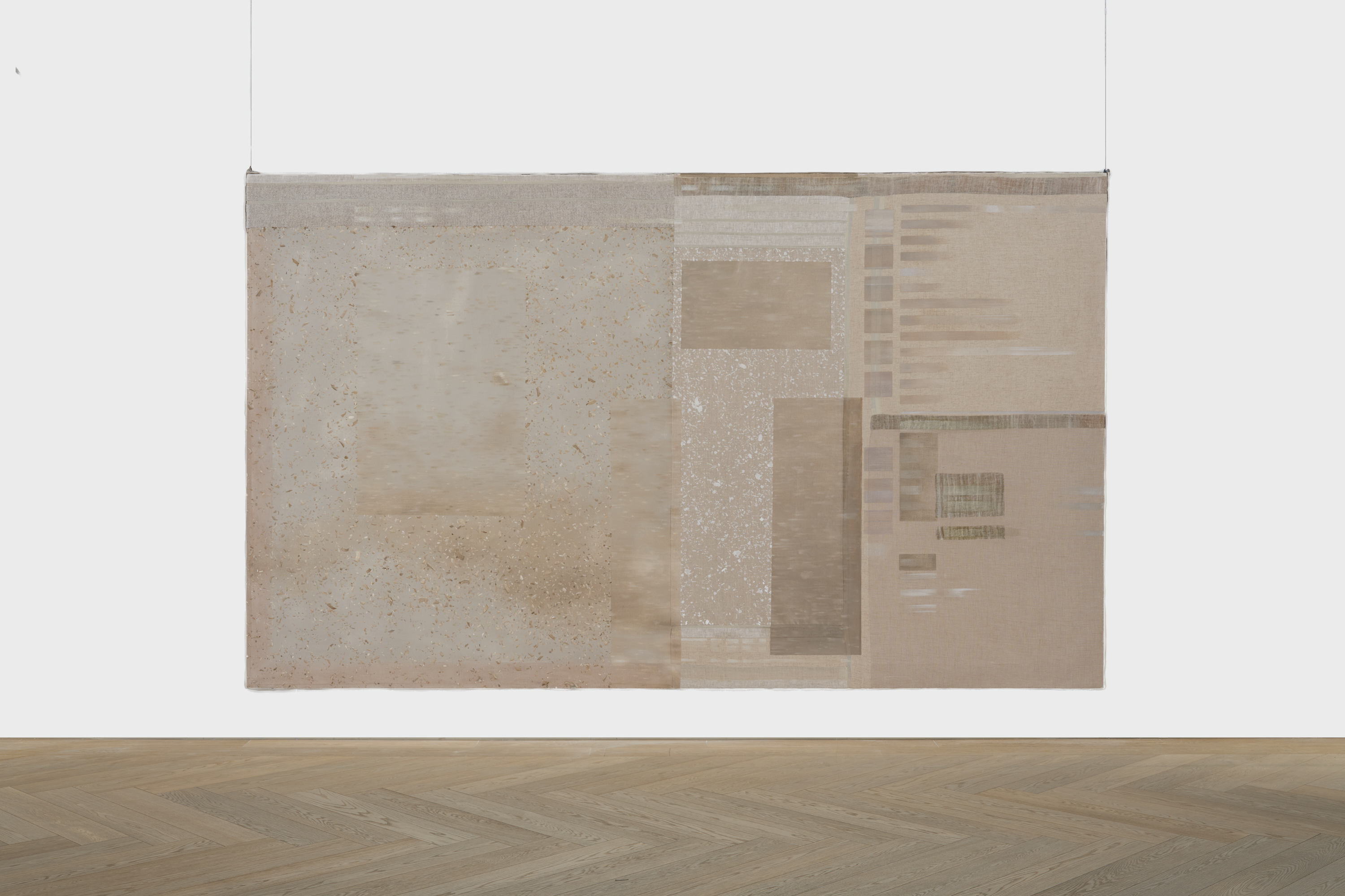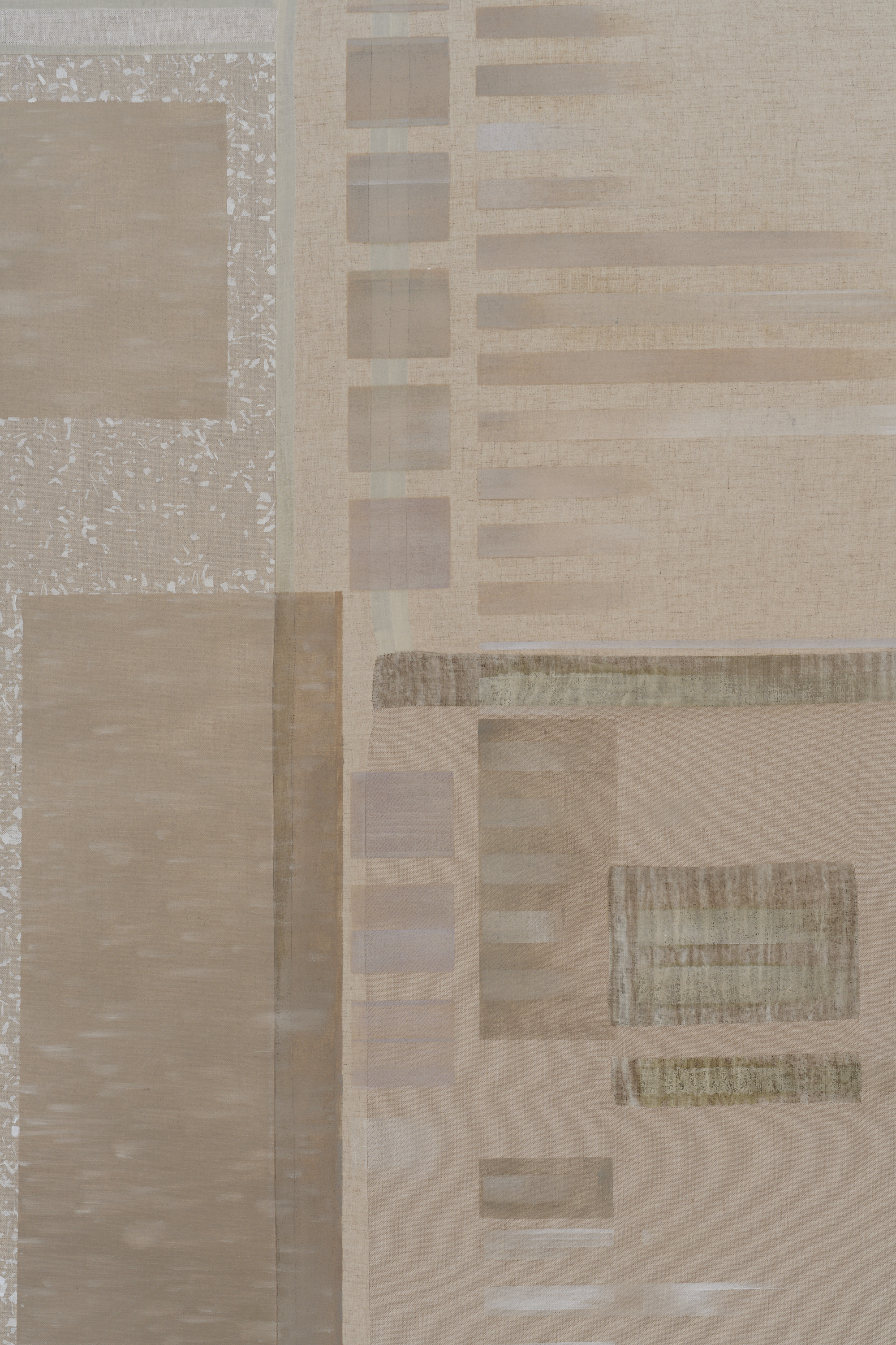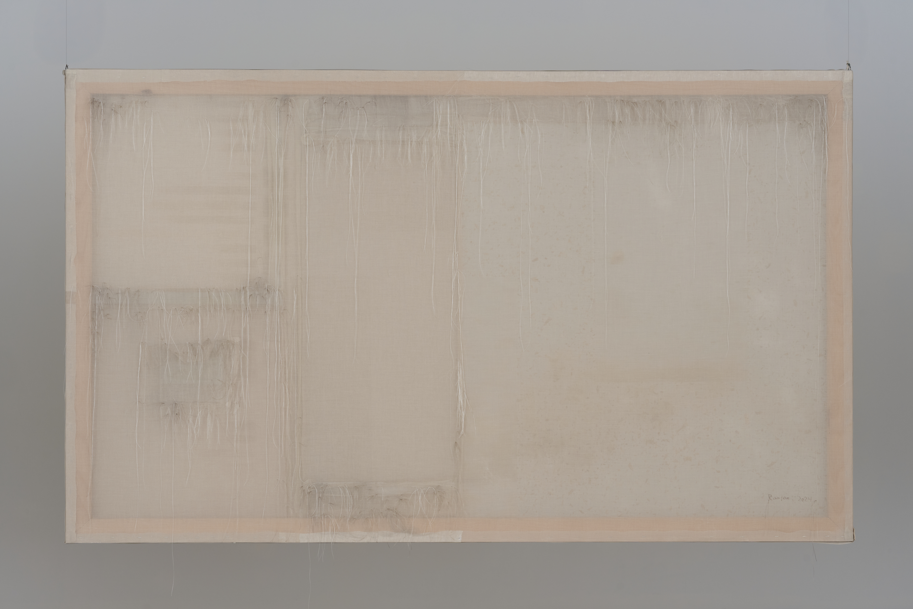 Oil on canvas, linen, cotton, silk, organza, polyester, cotton thread, linen thread, silk thread, beech wood.